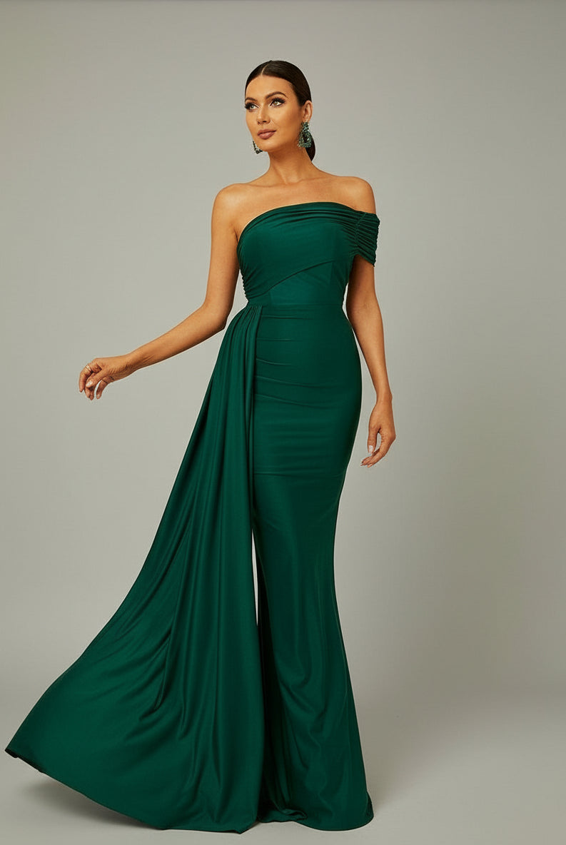 Draping Emerald Green Dress XH2158