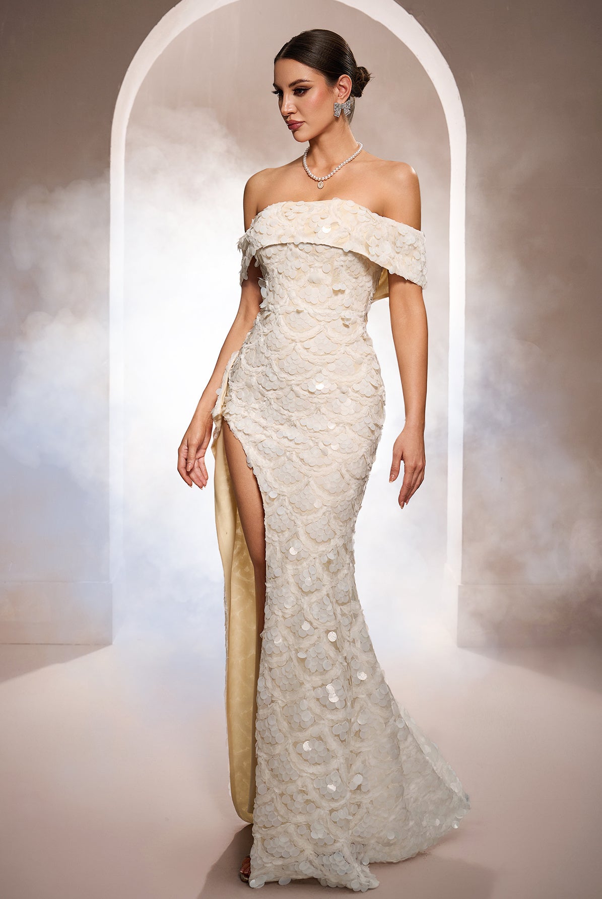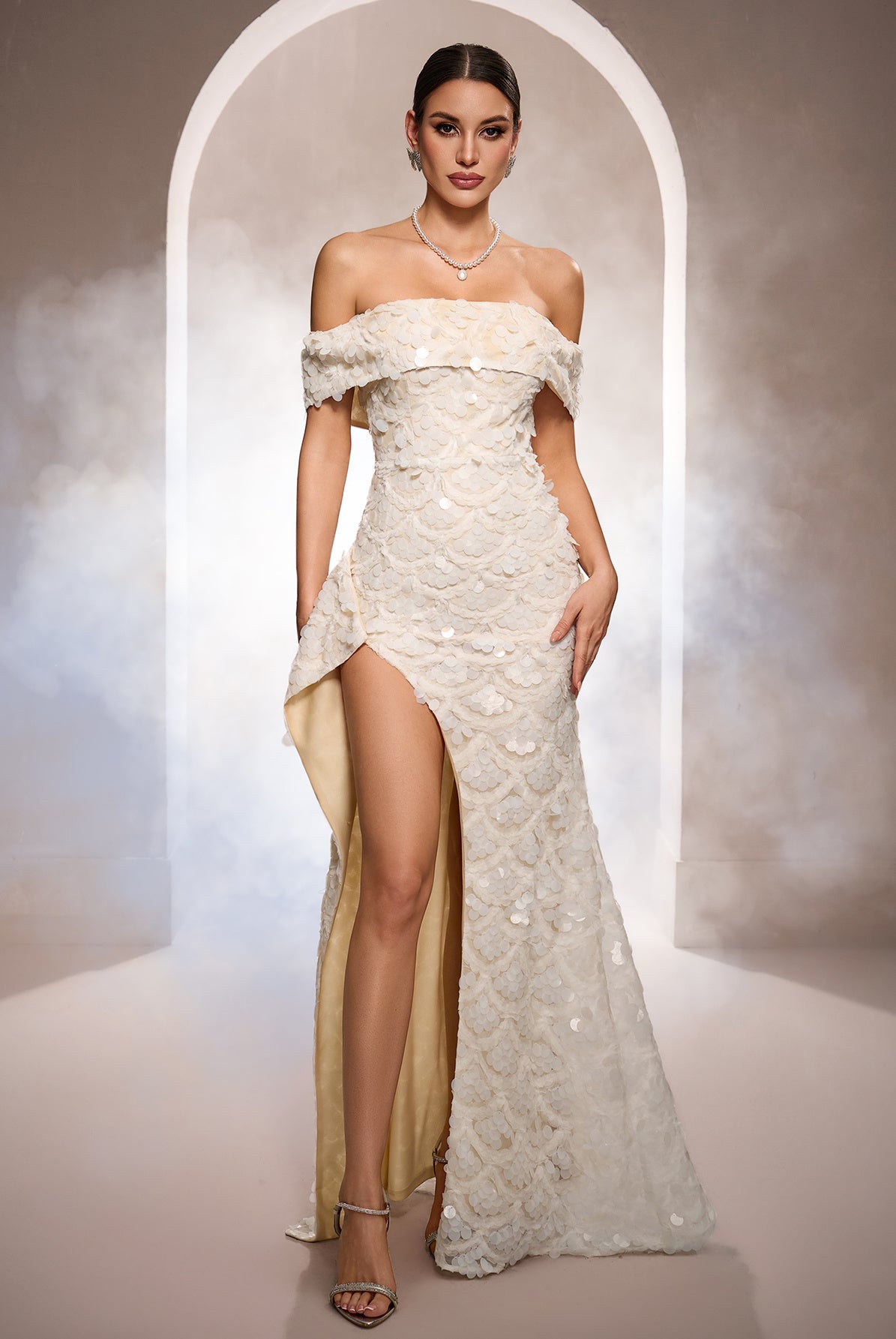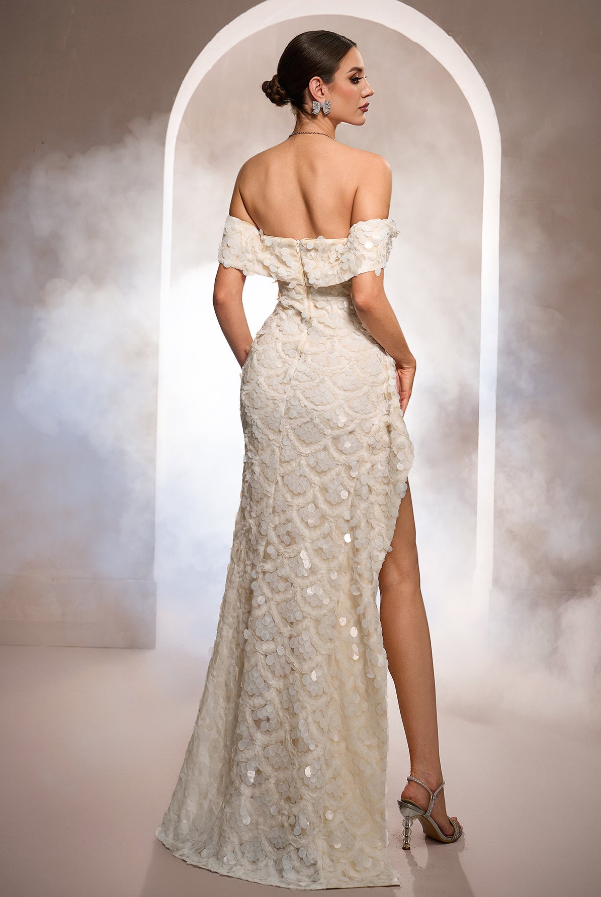 Off-Shoulder Mermaid Ruched Split Cocktail Maxi Dress XF250118