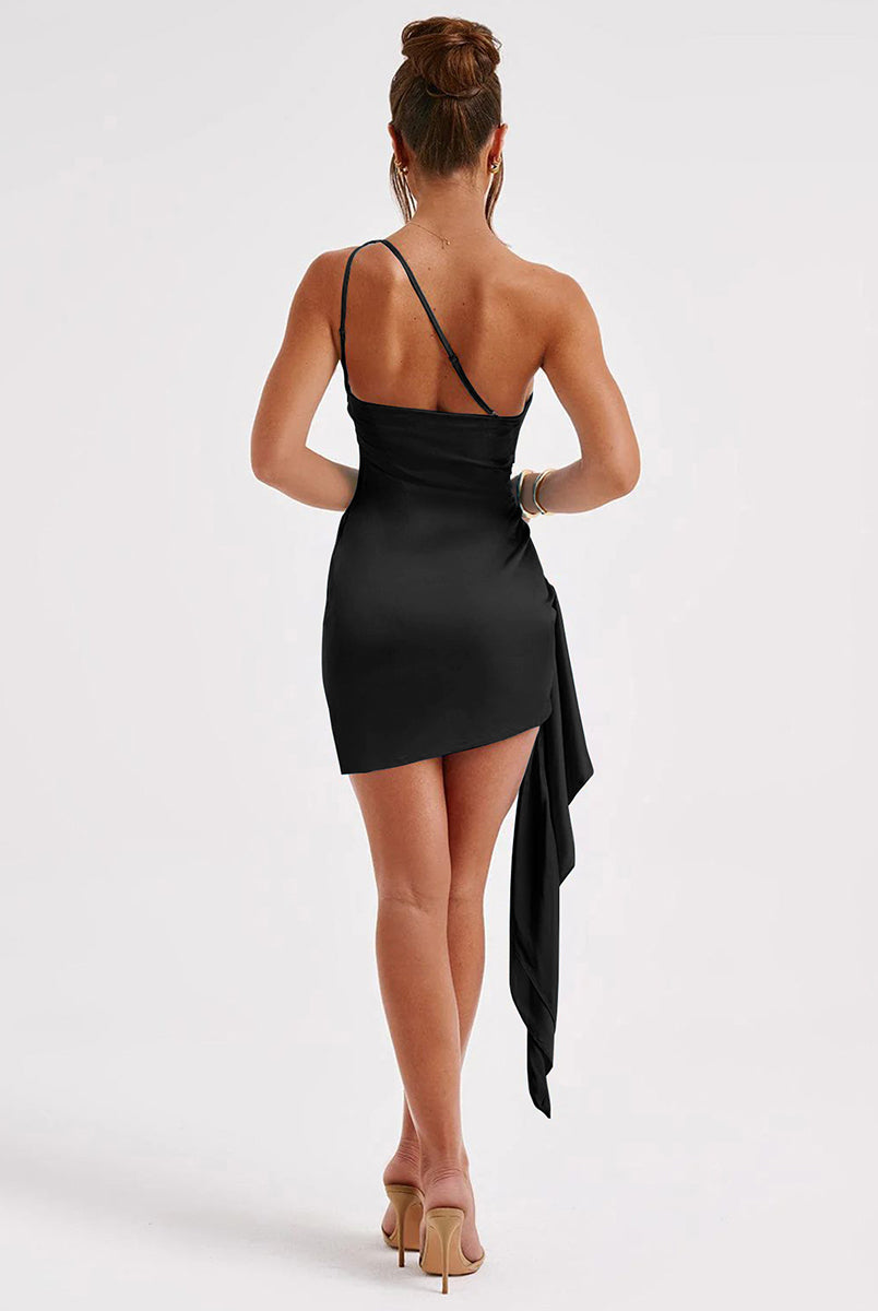 One Shoulder Draped Backless Mini Dress XF05770
