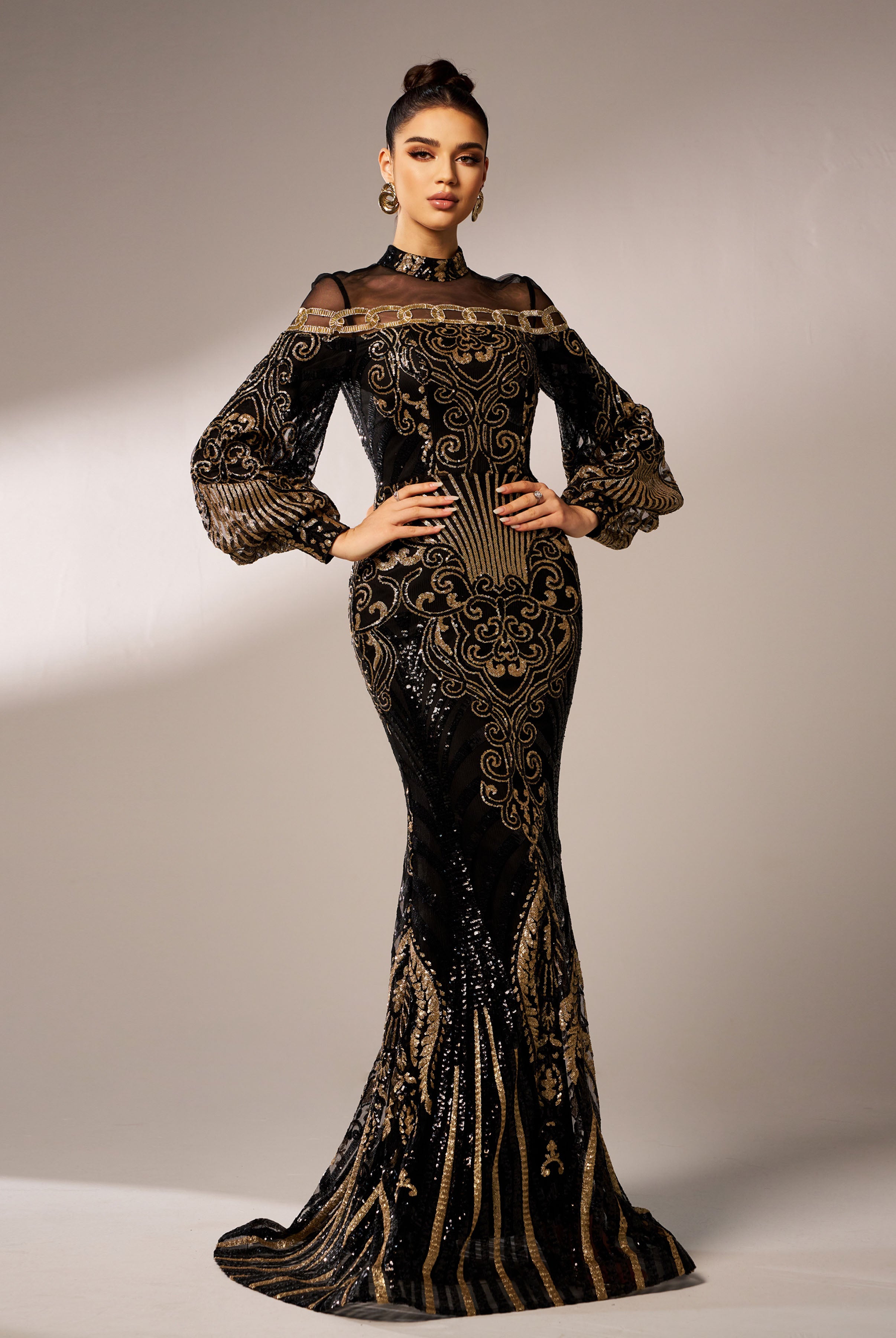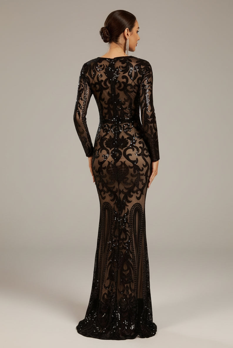 Silver Sequin Long-Sleeve Formal Dress XF251211