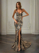 Barockes Maxi-Abschlussballkleid mit Schnürung am Rücken und Pailletten M01086
