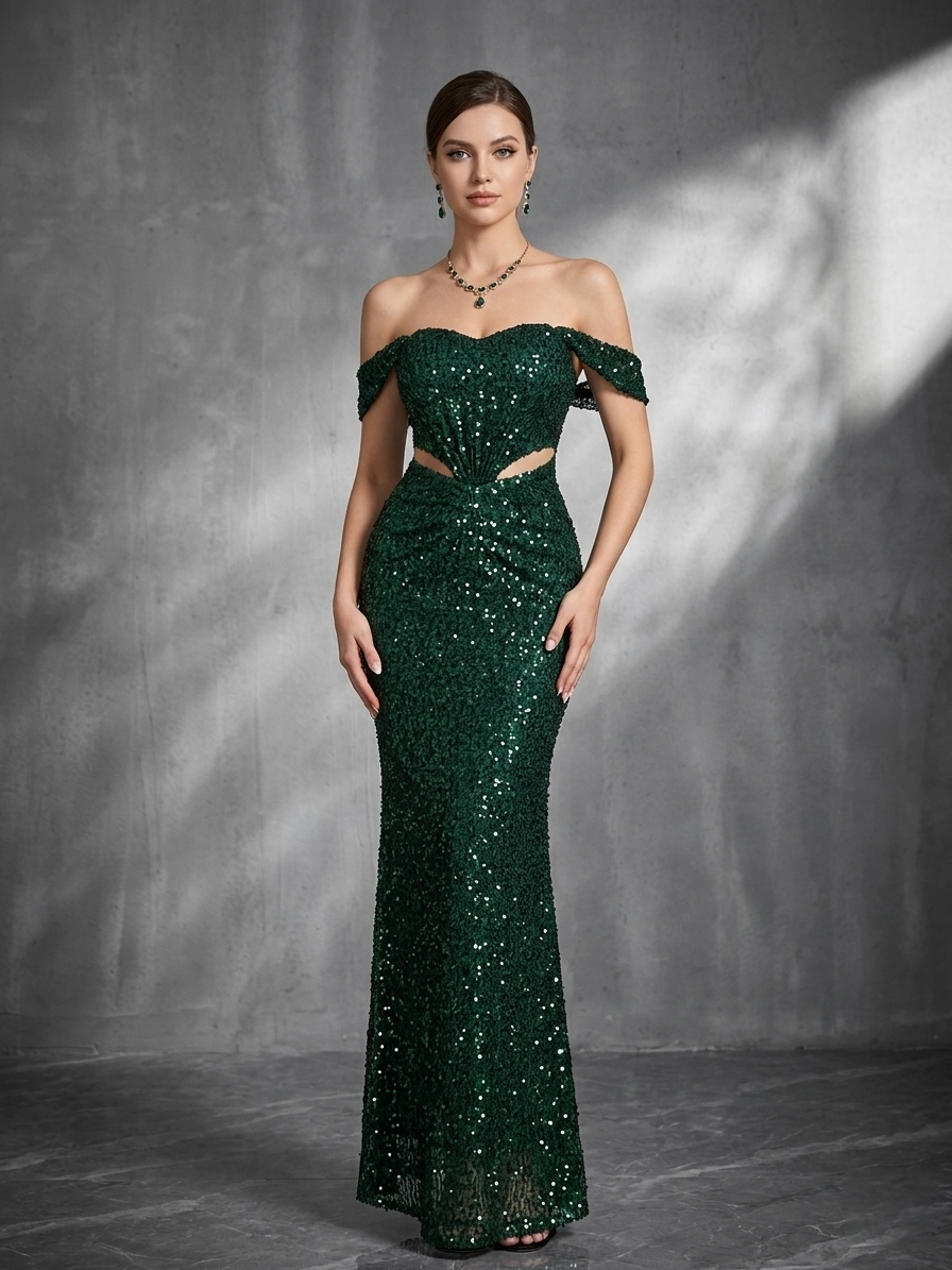 Green Off Shoulder Sequin Mermaid Formal Dress ST59030