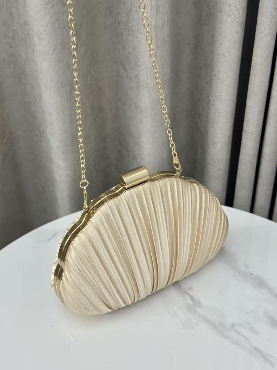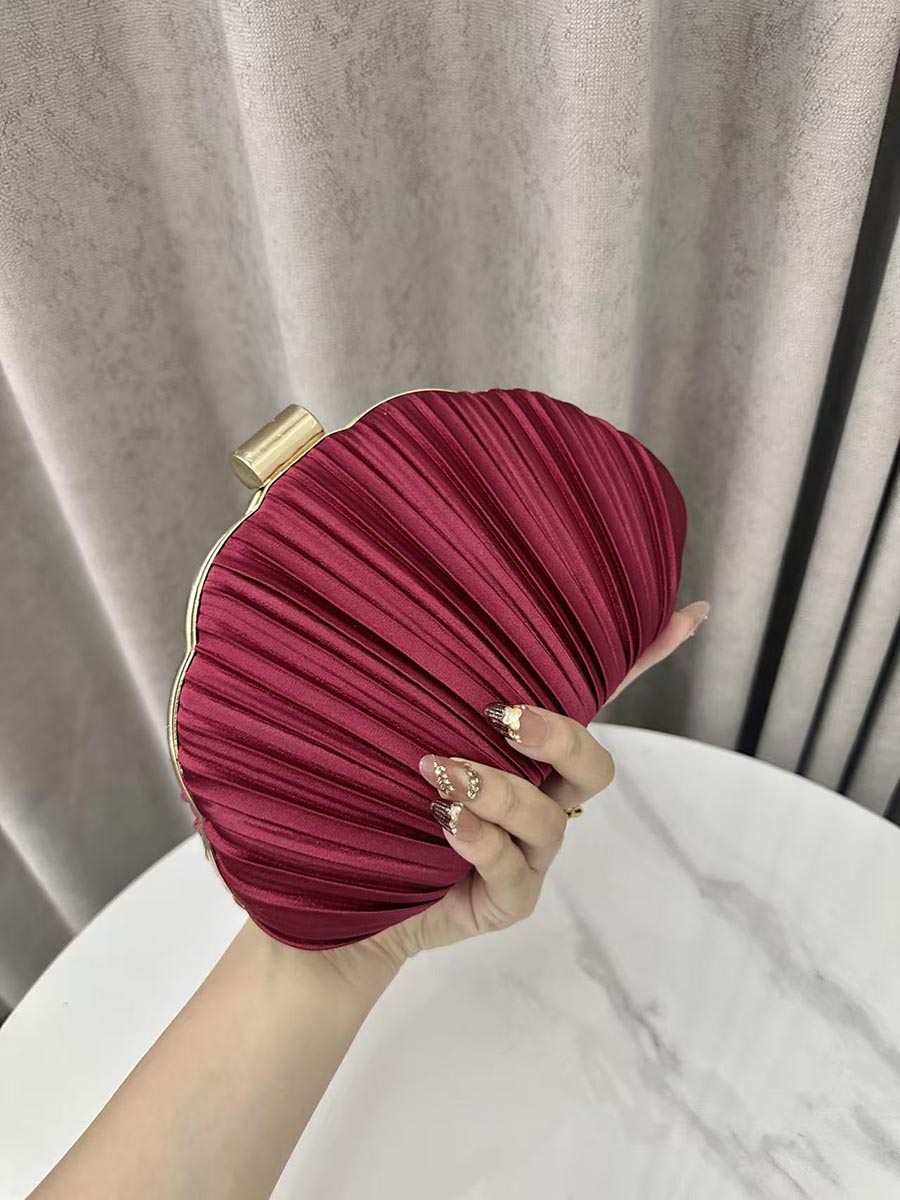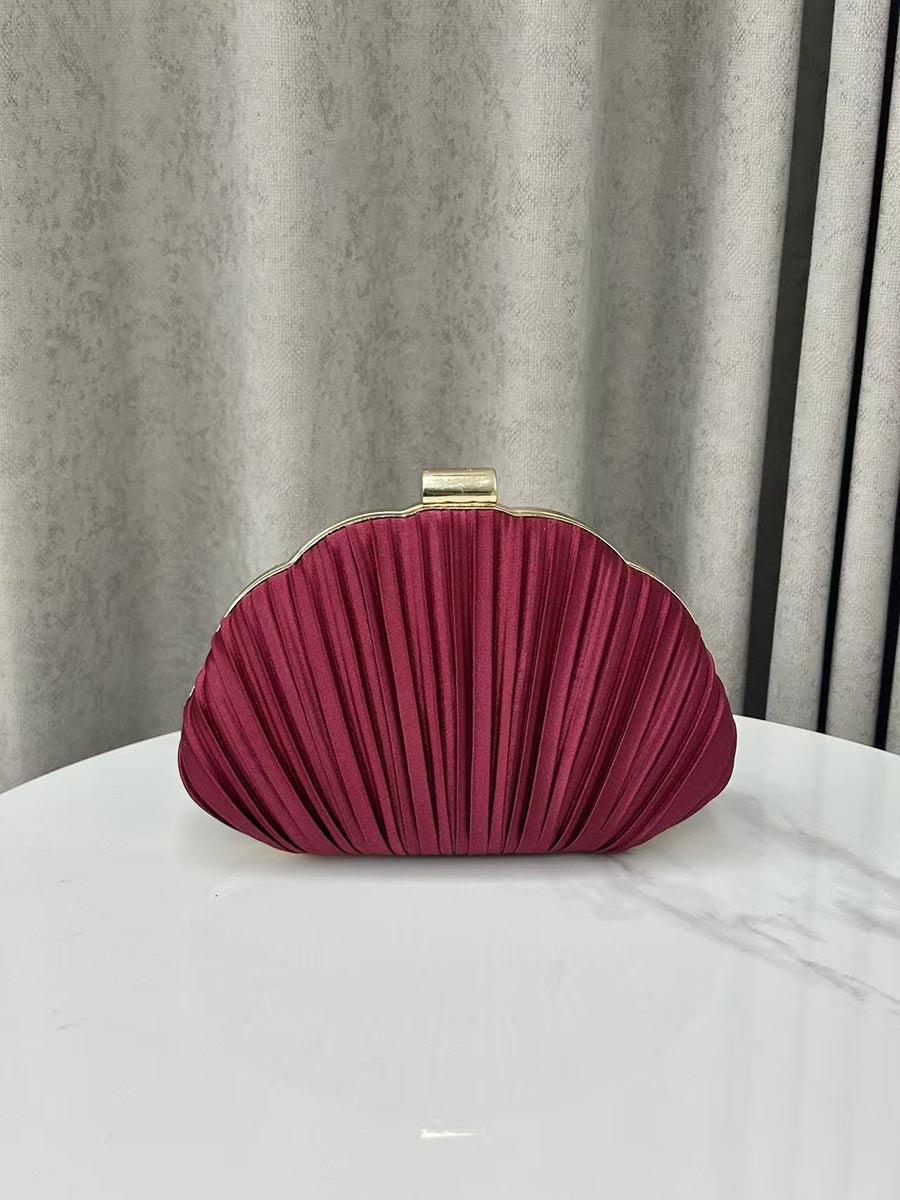 Pleated Satin Shell-Shaped Clutch MNBF122