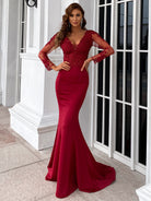Elegant Long Sleeve Embroidered Applique Mermaid Evening Gown M01592