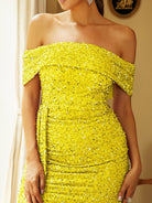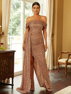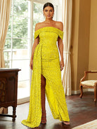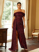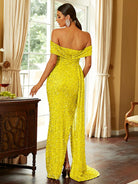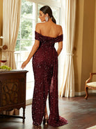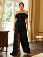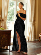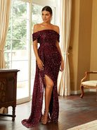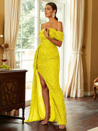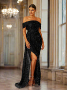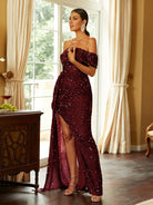 Turn heads in our gorgeous Off Shoulder Sequin High Split Prom Dress! The stunning sequin detailing adds a touch of glamour while the high split gives a sexy edge. With its off shoulder design, you'll feel confident and stylish all night long. Perfect for any special occasion!