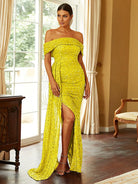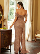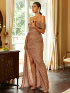 Off Shoulder Sequin High Split Prom Dress XH2132