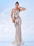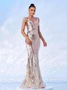 V-neck Sleeveless Mermaid Sequin Formal Dress RM21551