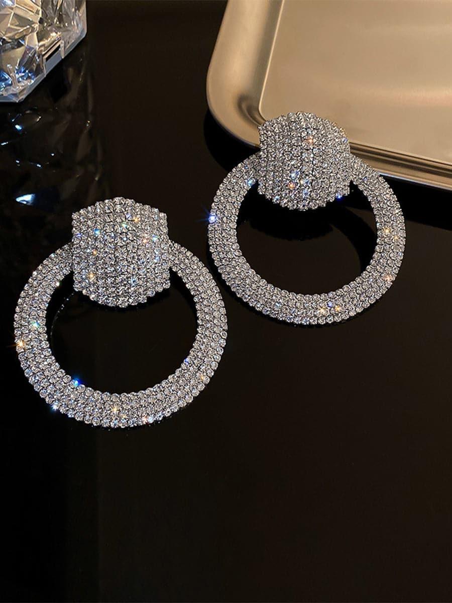 S925 Silver Needle Rhinestone Hoop Earrings MSE092401