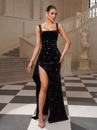 Velvet Rhinestone Sexy Prom Dress SL30215