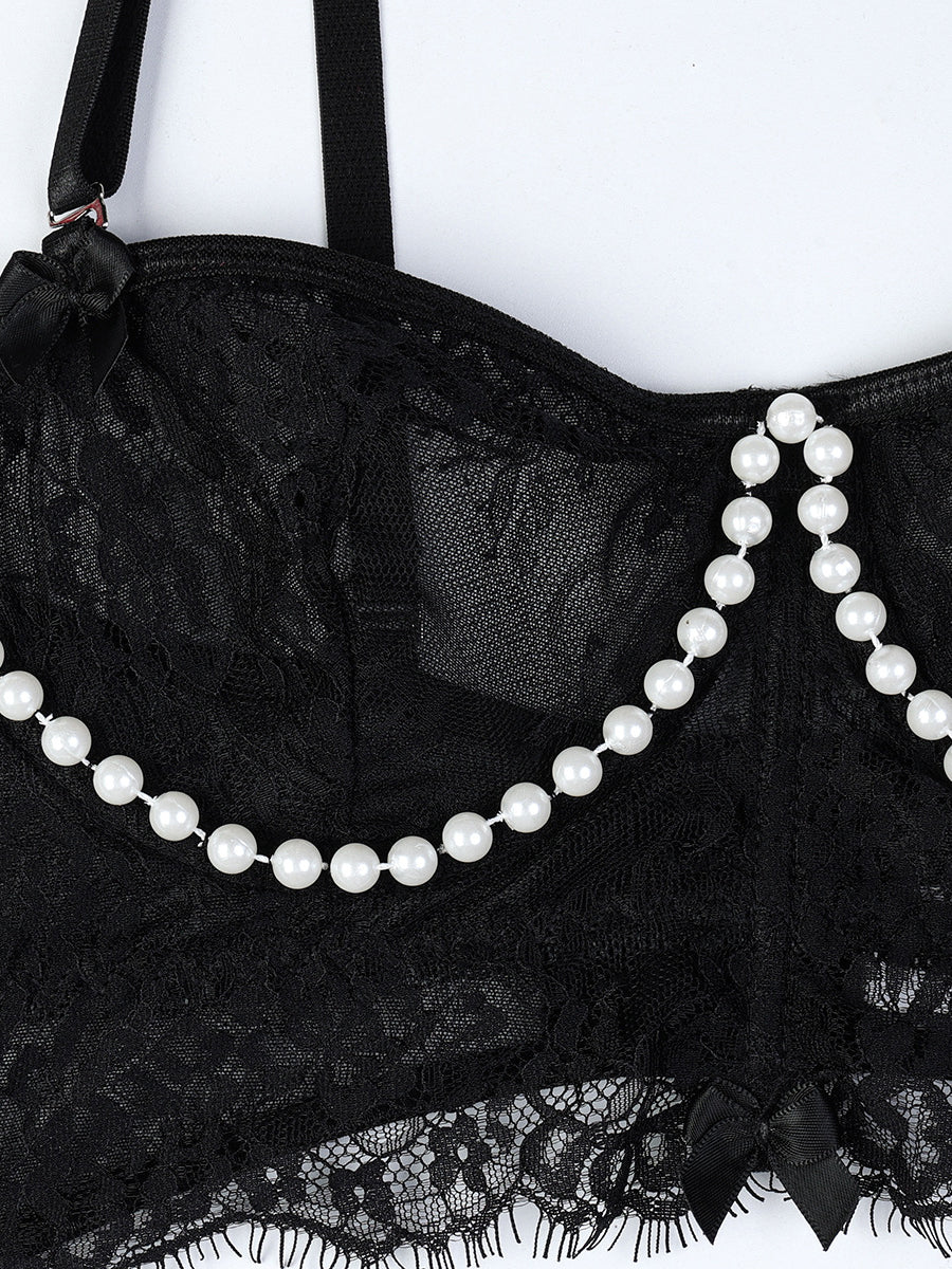 Beads Ruffled See-through Sexy Two Set Lingerie MSL095