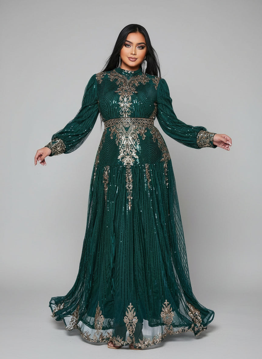 Elevate your style with our Plus Stand Collar Sequin A-line Dress. Stand out from the crowd with the dazzling sequin design and A-line silhouette. The high collar adds a touch of elegance while the comfortable fit will make you feel confident all day long. Perfect for any special occasion!