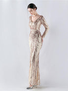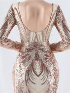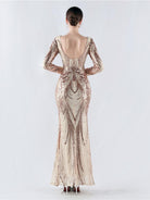 Long Sleeve Sequin V-neck Backless Prom Dress MCW1000