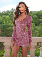 Sequin Long Sleeve V-neck Mini Party Dress MCC1213