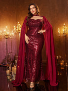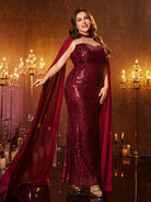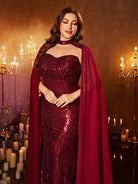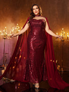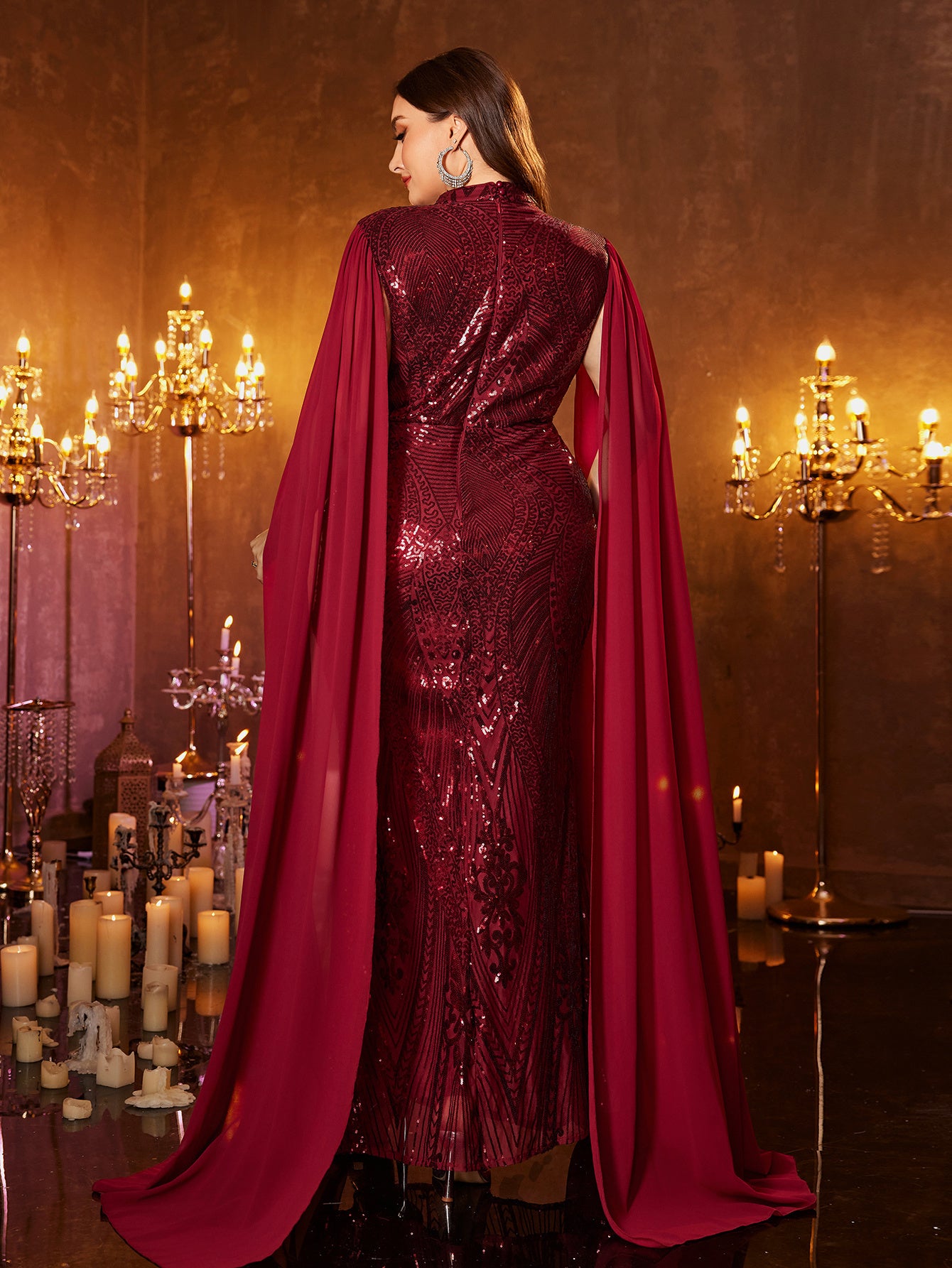 Plus Graphic Cape Sequin Evening Dress PMQ0001