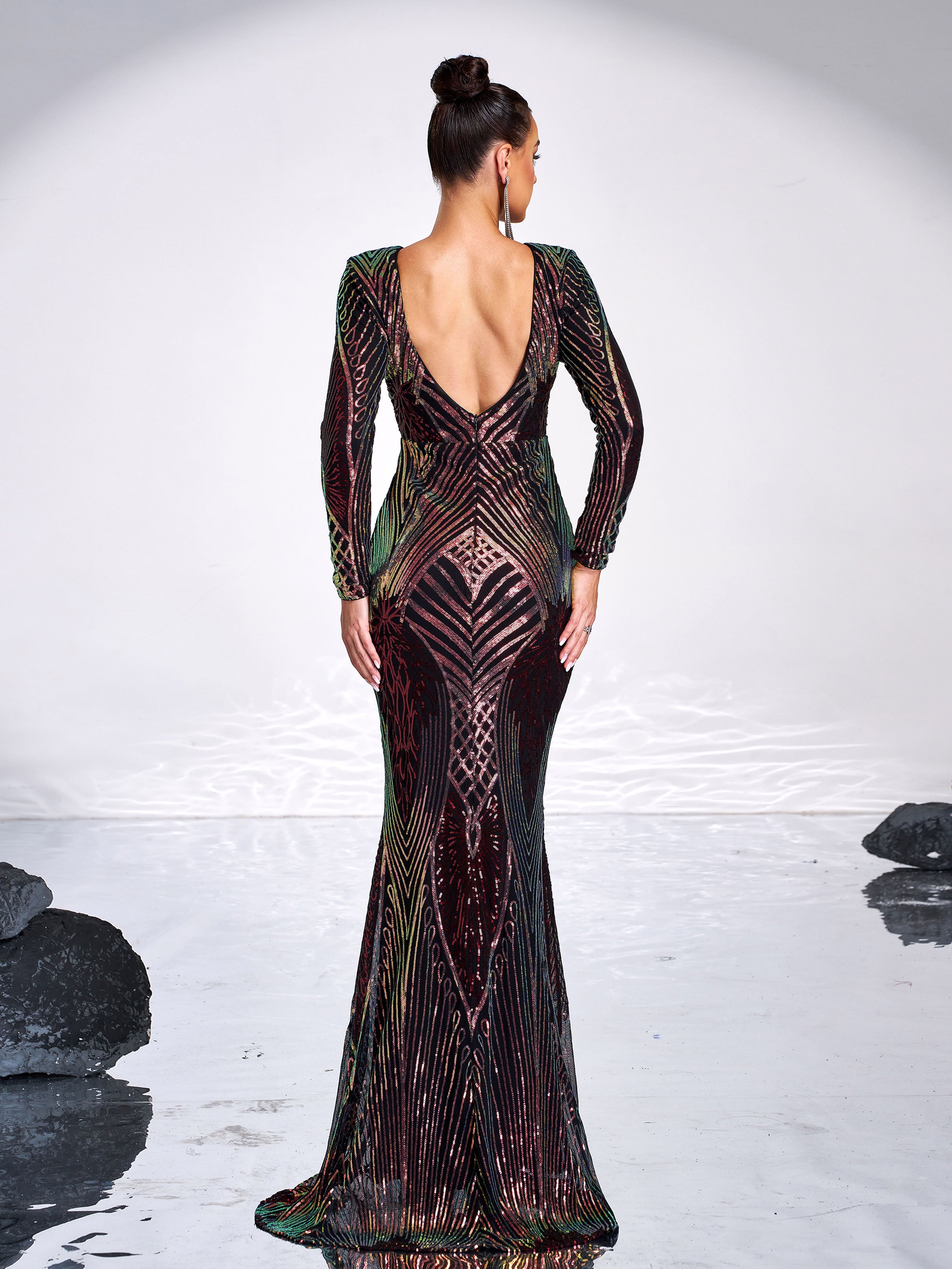 Graphic Sequin Mermaid Fromal Dress FT19747