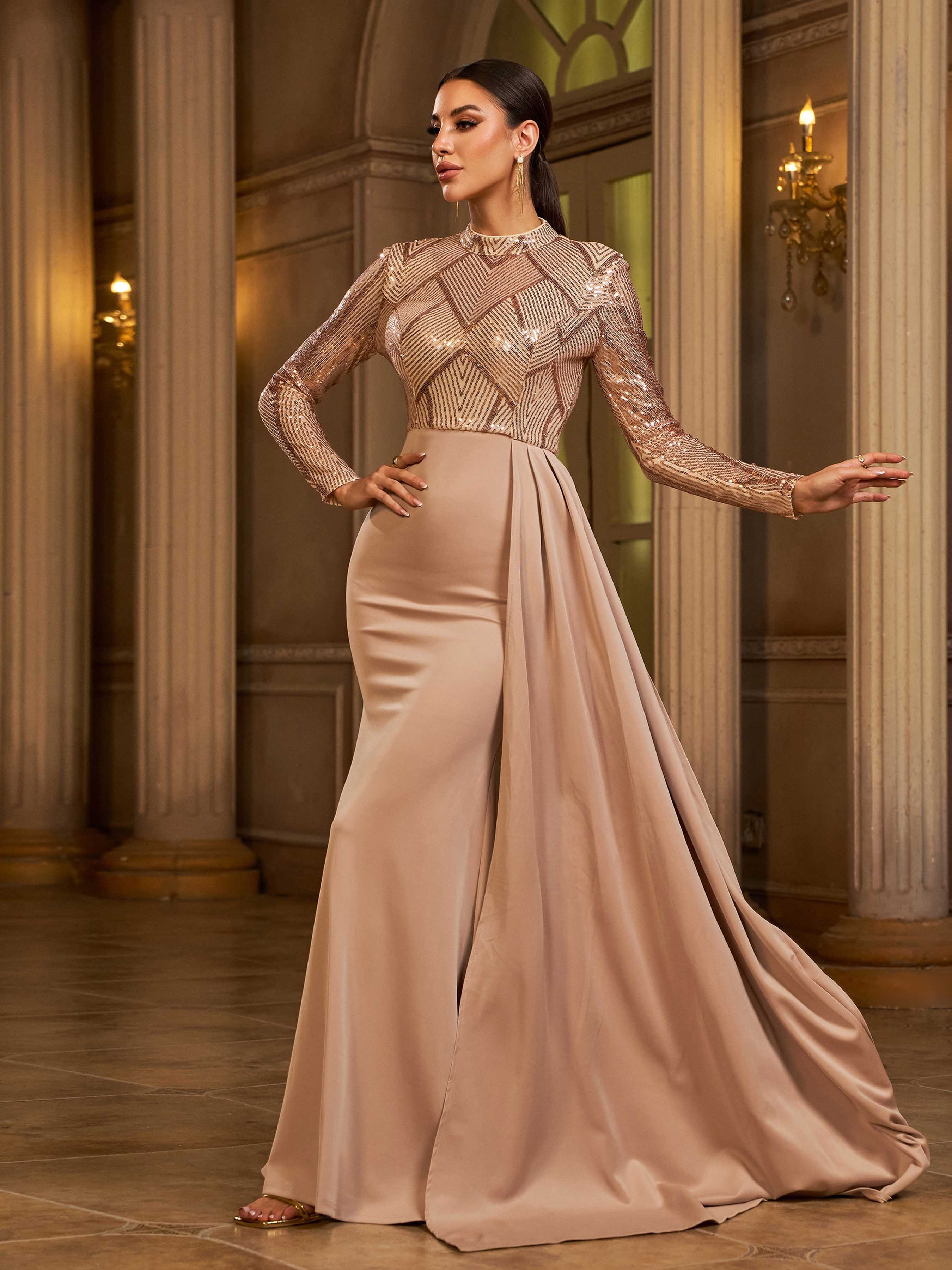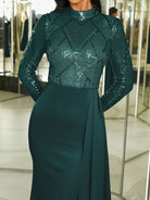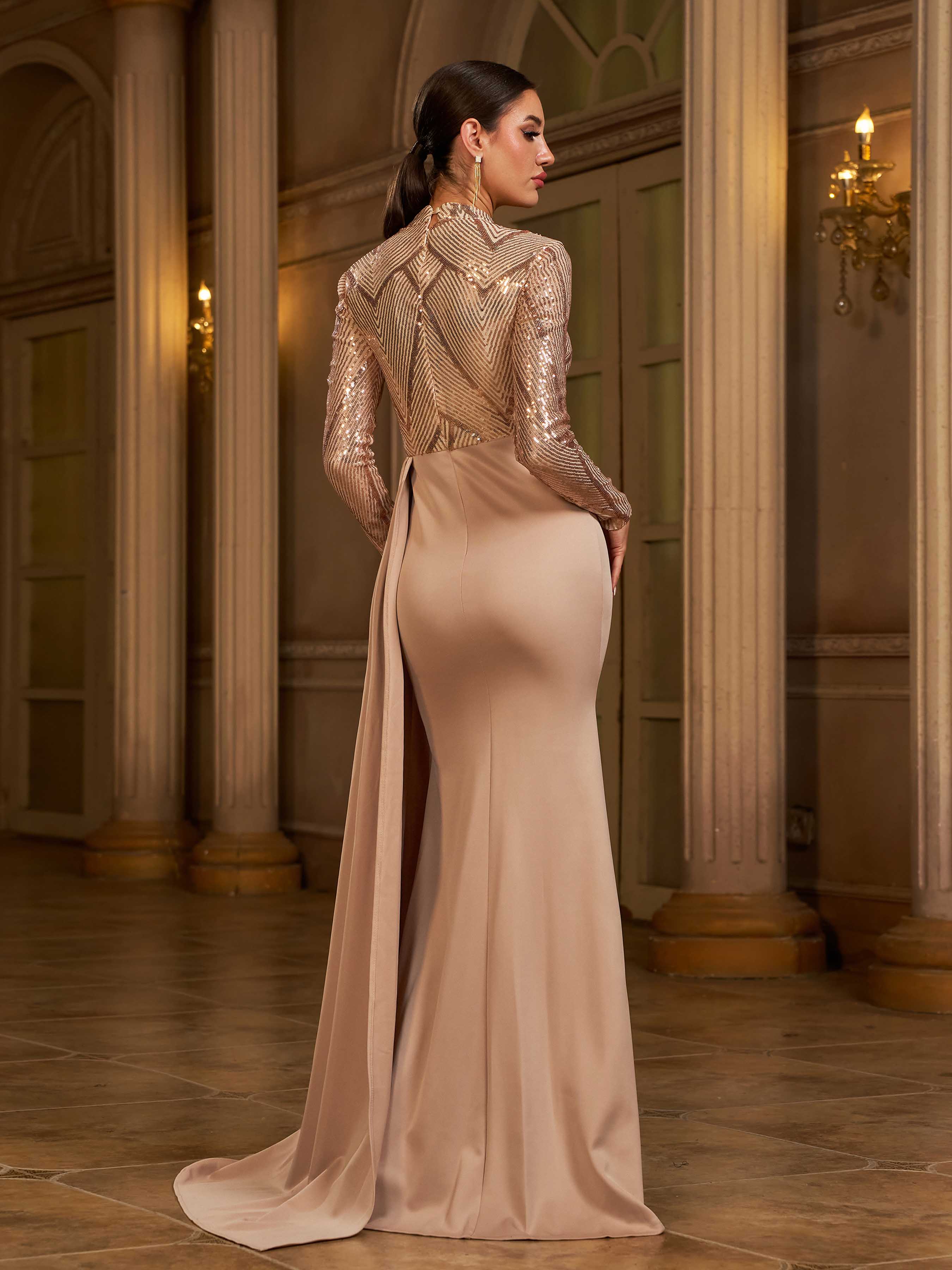 Add some sparkle and sophistication to your formal attire with our Draping Long Sleeve Sequin Red Formal Dress. Get ready to turn heads with its beautiful draping and figure-flattering A-line silhouette. With long, elegant sleeves, you'll radiate elegance and grace at any event!