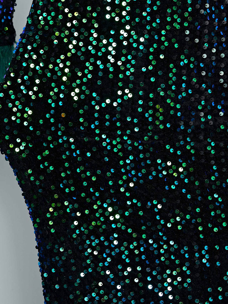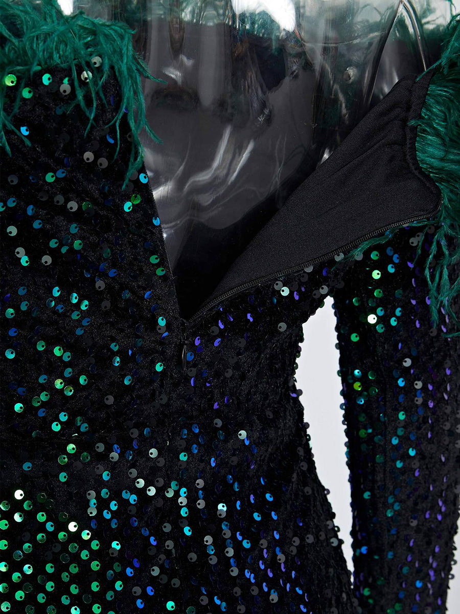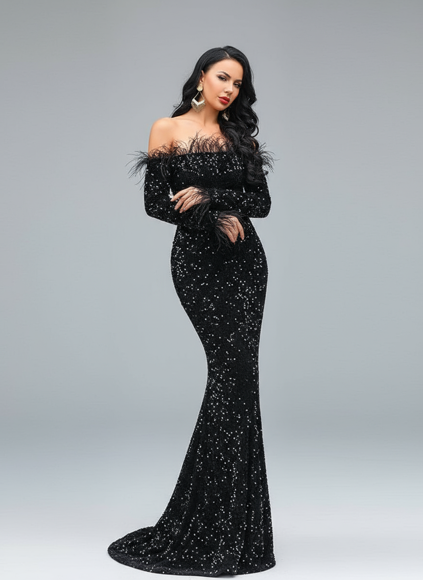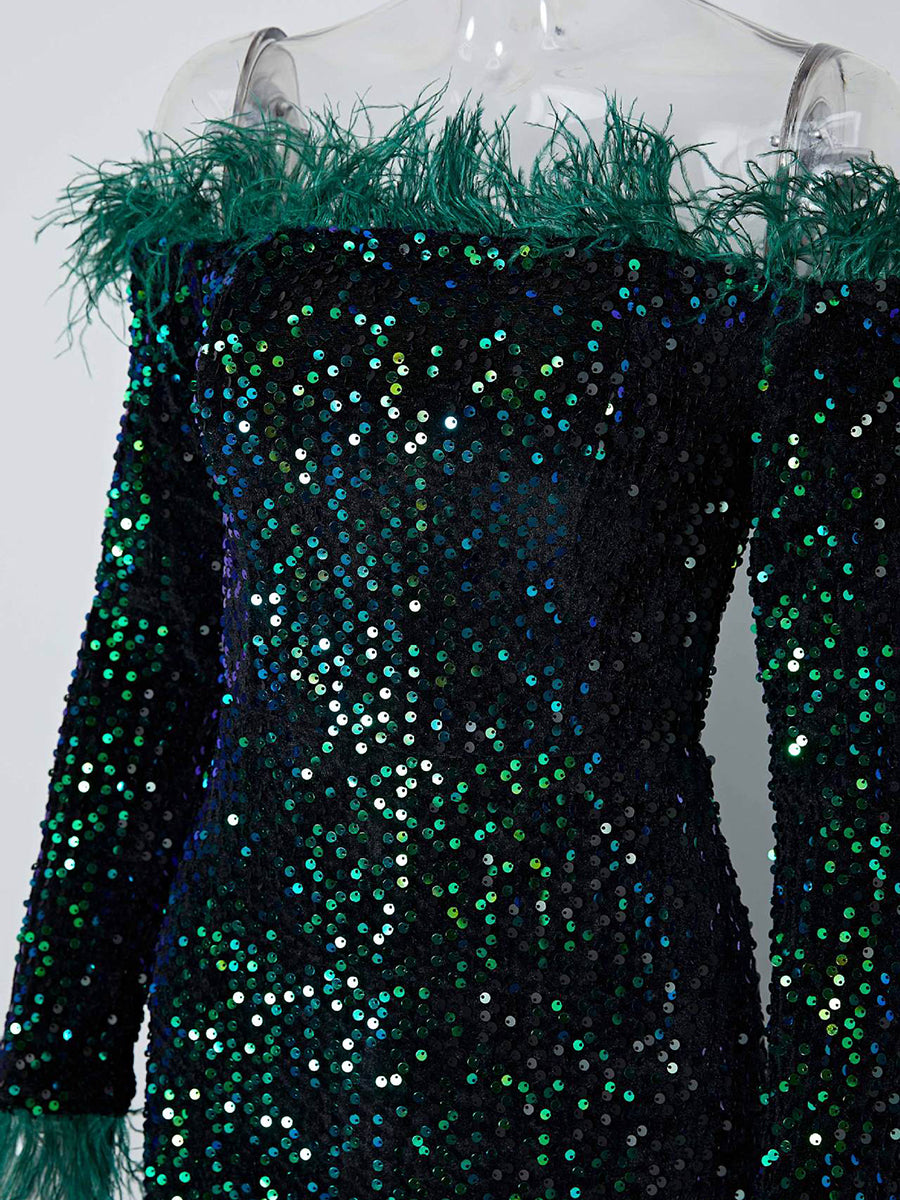 Off Shoulder Feather Sequin Evening Dress FT19005