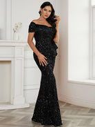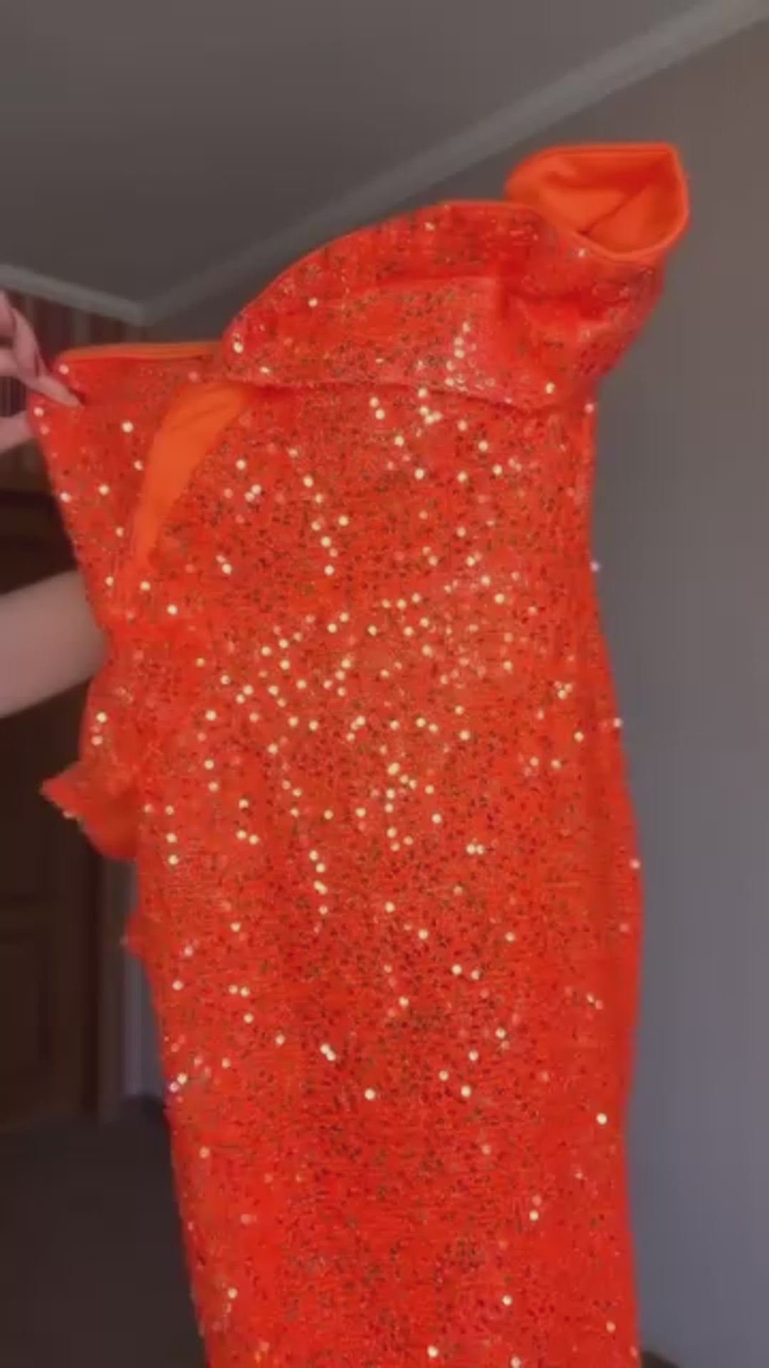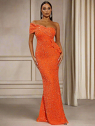 Ruffled Sequin One Shoulder Mermaid Dress WY46