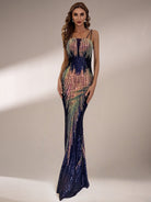 Sheath Sequin Gradient Spaghetti Formal Dress M0831