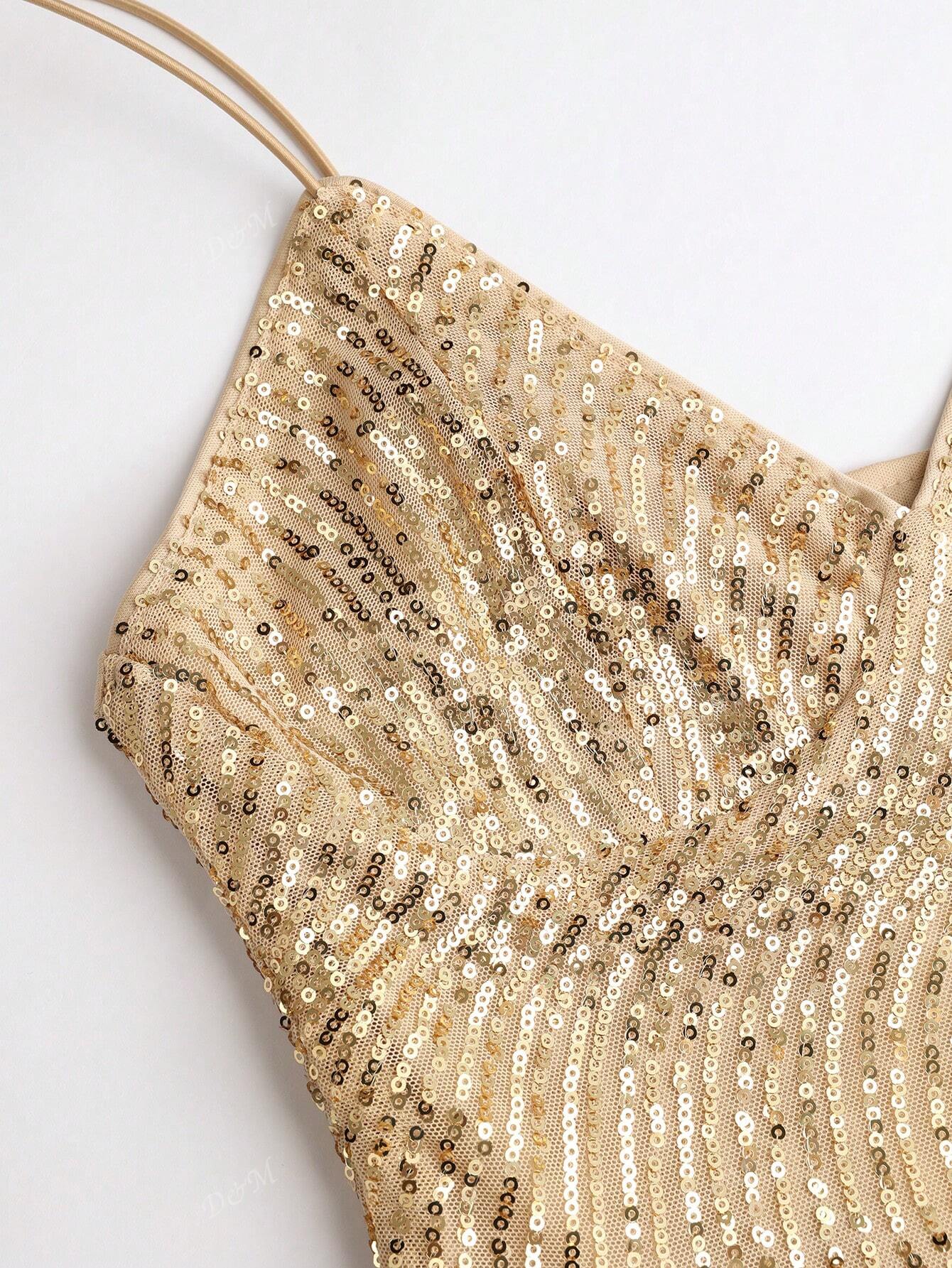 Sleeveless Sequin V-neck Dress MYC1004