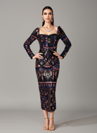 Square Neck Long Sleeve Split Sequin Dress RM20830