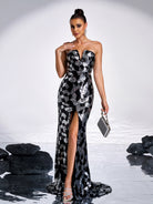 This stunning vintage cocktail dress features a sexy split, maxi length and multicolor sequin design. Perfect for any special occasion, this dress combines timeless style with modern glamour for a chic, eye-catching look.