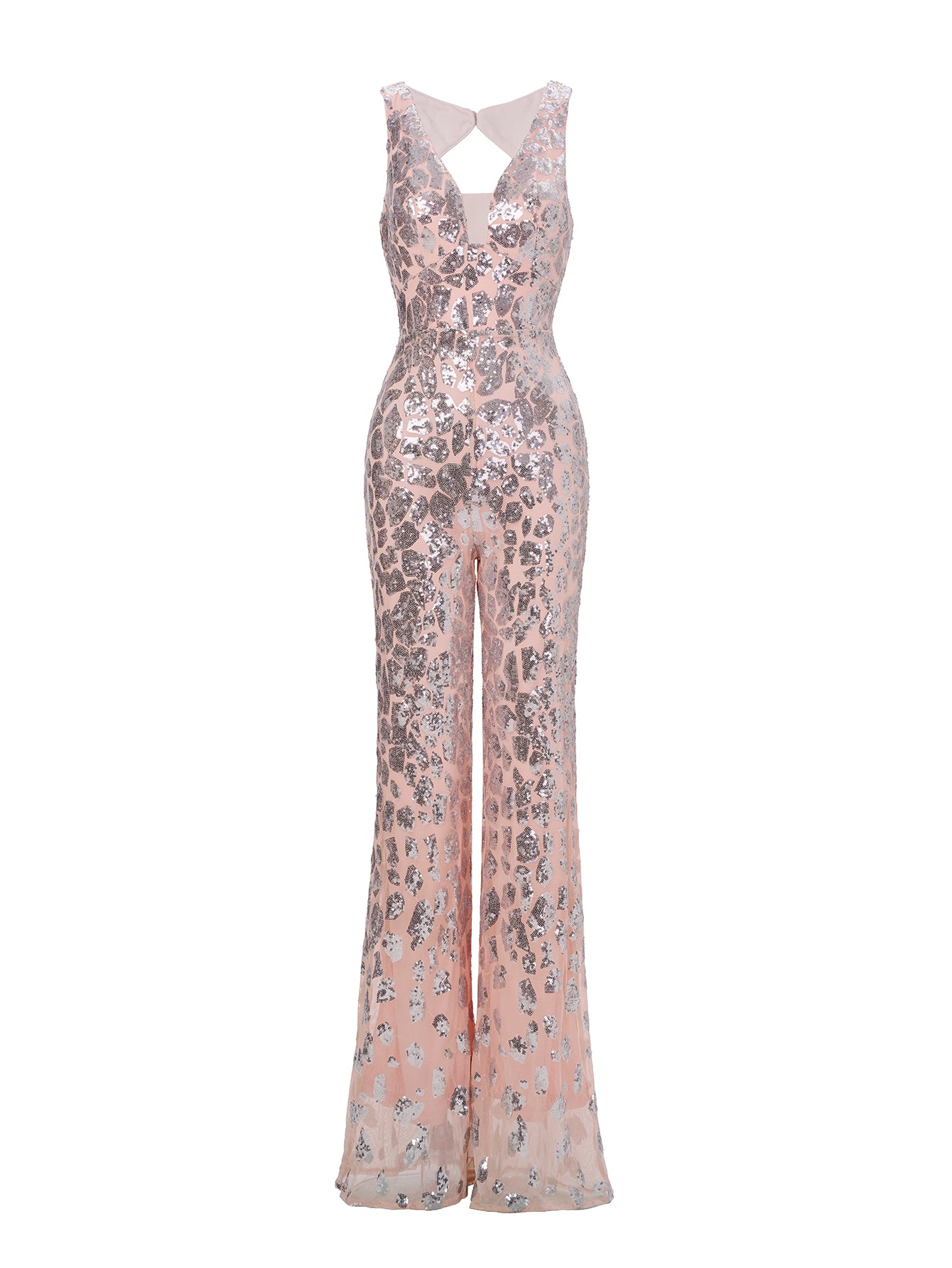 Sleeveless Cutout Sequin Jumpsuits DH80219
