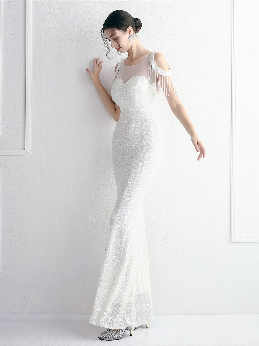 Elegant Bust Cut Out Split Sequin Prom Maxi Dress M0543