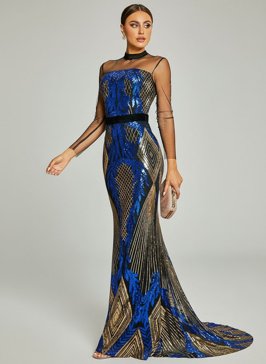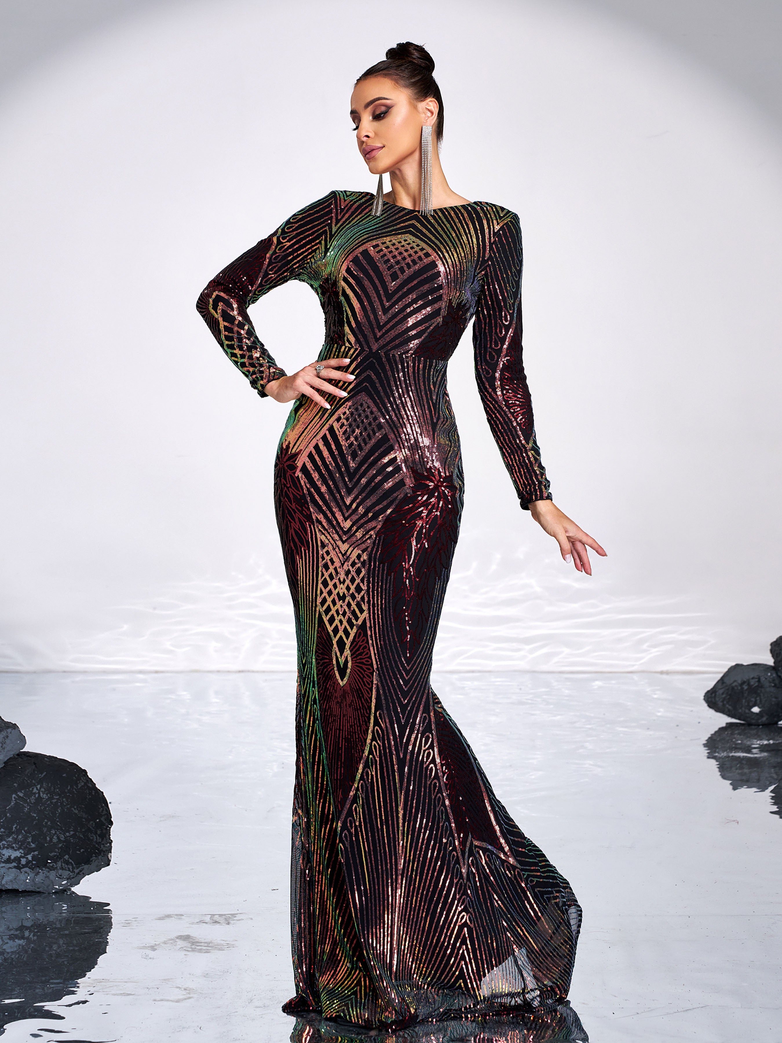 Graphic Sequin Mermaid Fromal Dress FT19747