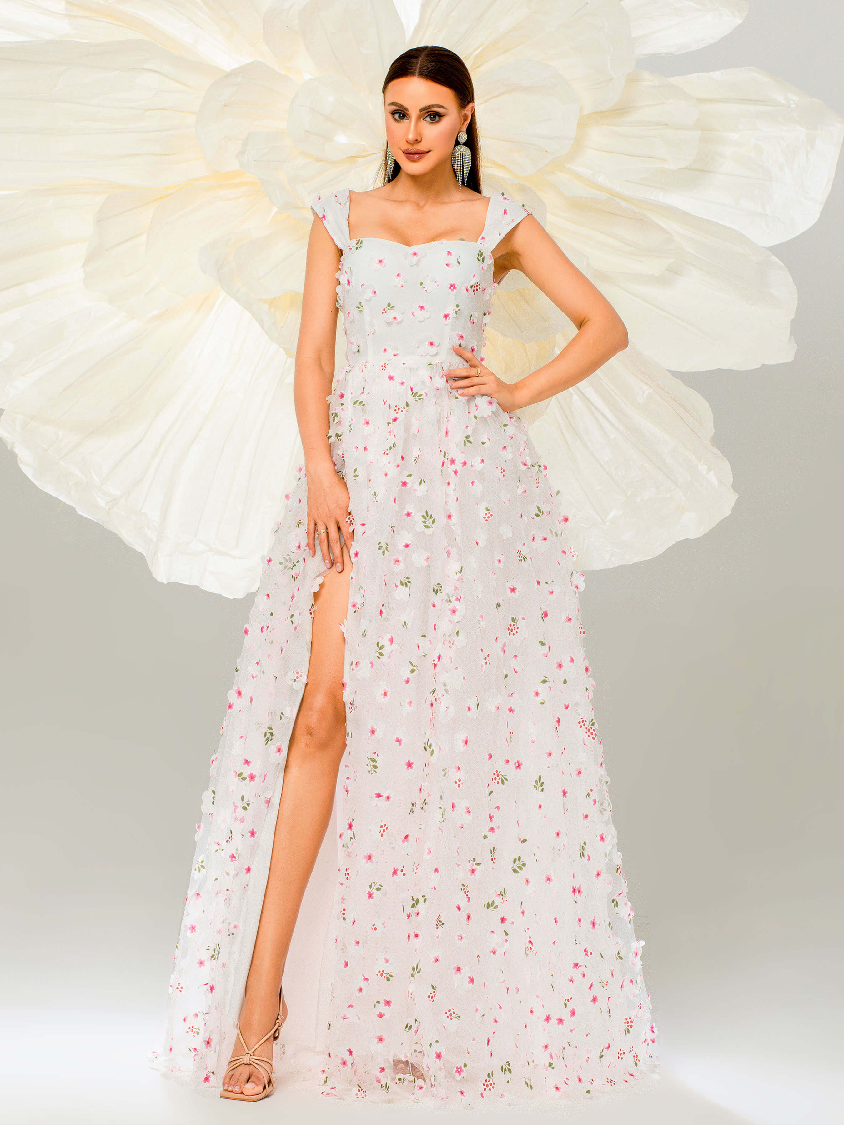 Sleeveless Ruffled Split Floral Sequin Dress RJ11878