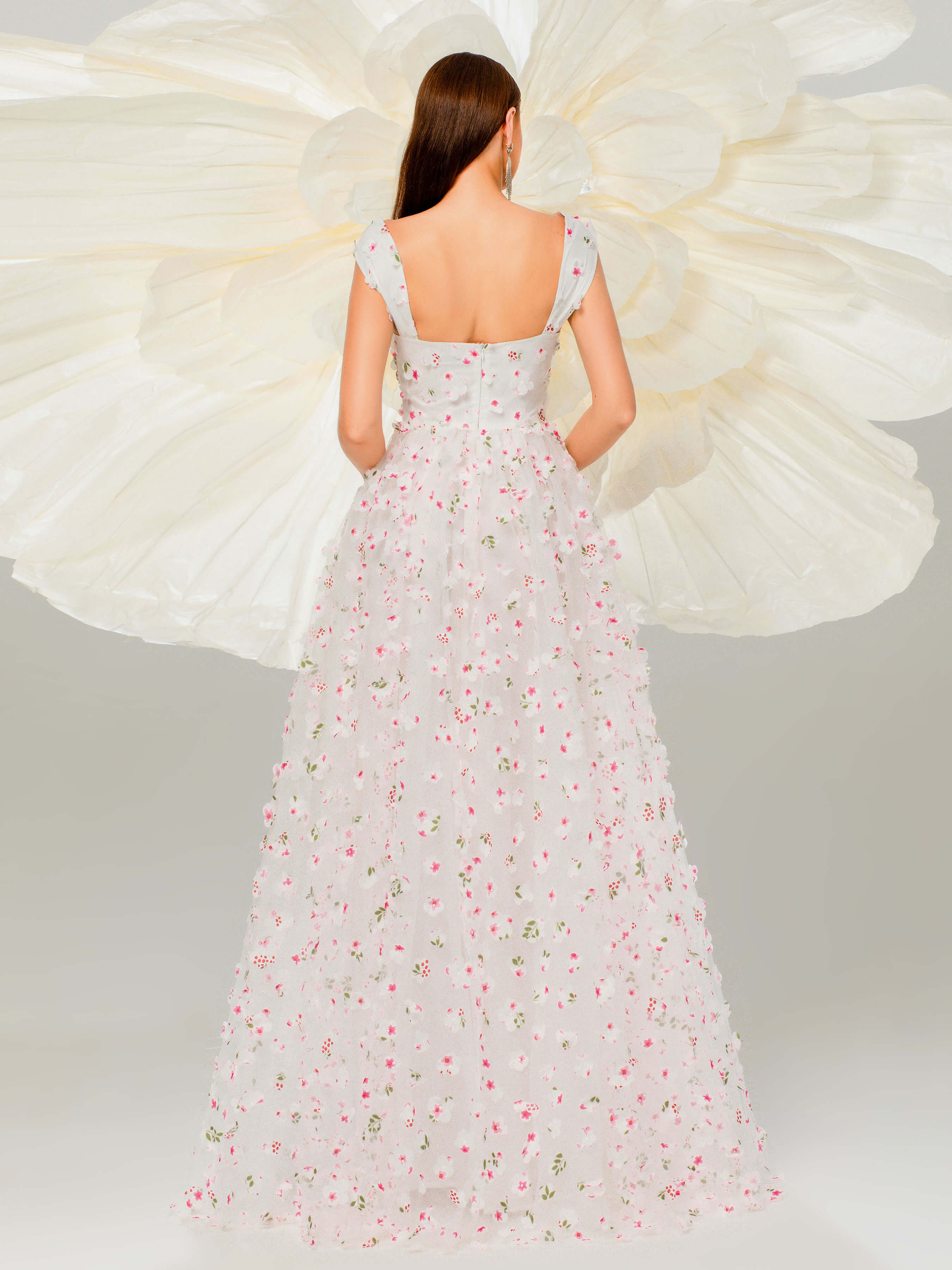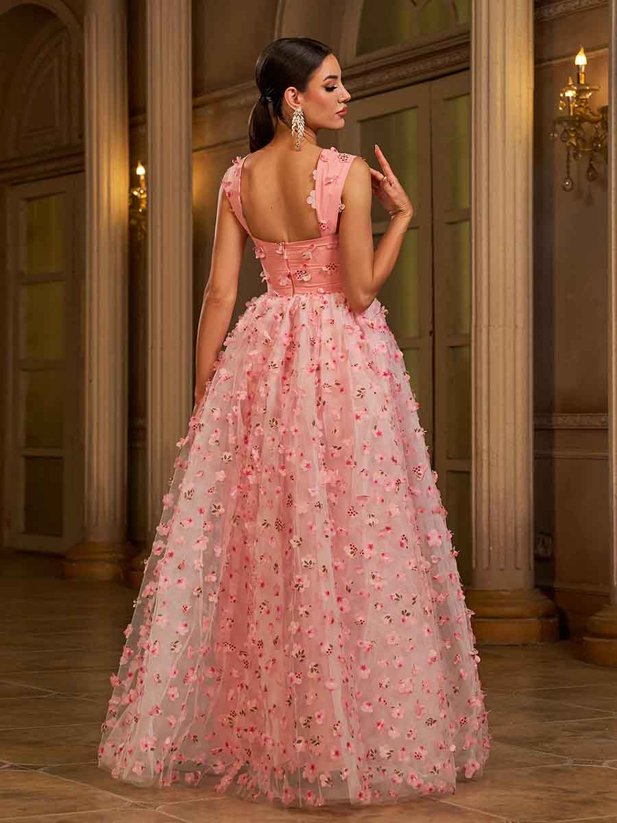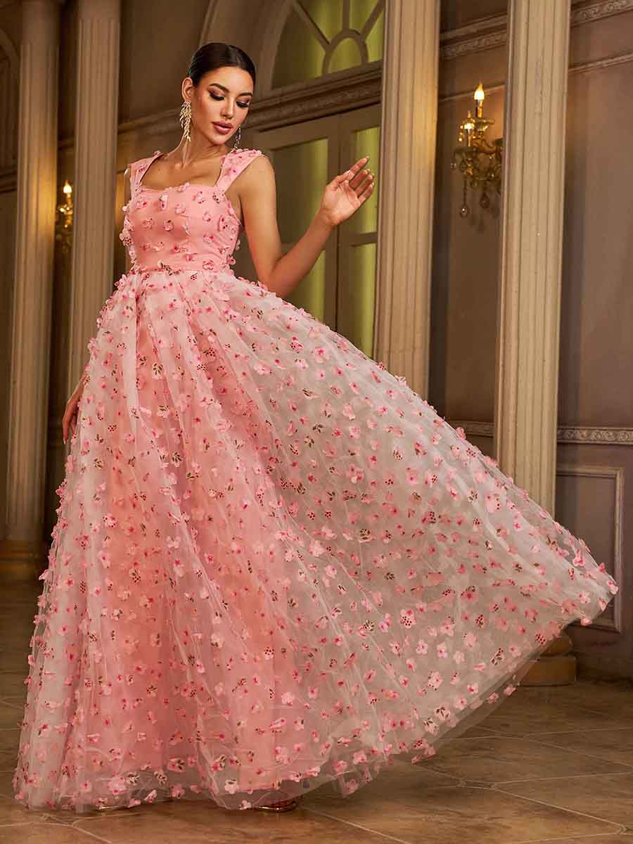 Appliqued Pink Camisole Floral Tulle Dress GM00142