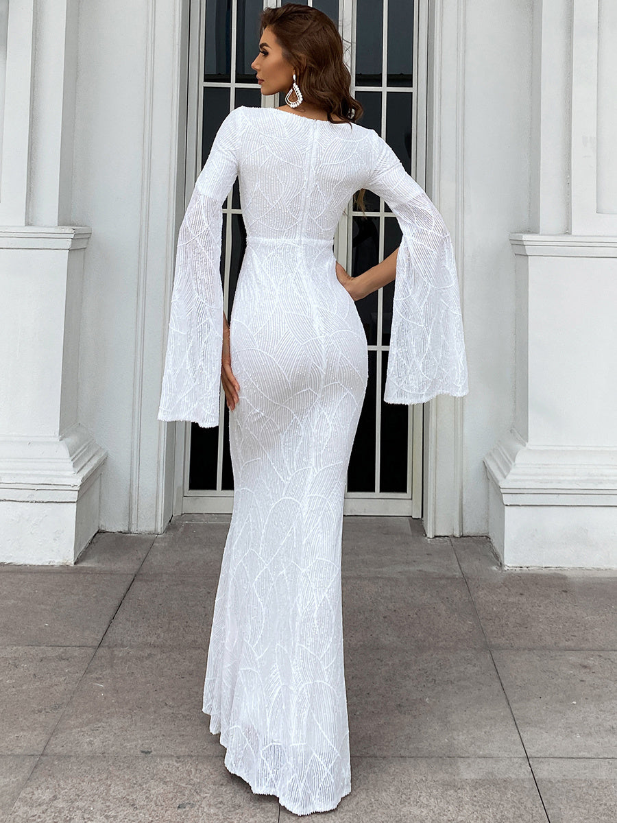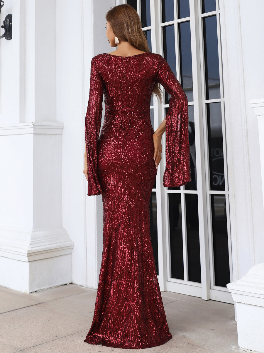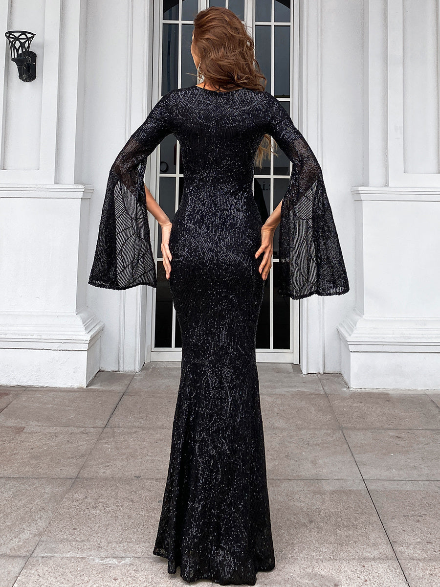 Split Sleeve Sequin Mermaid Prom Dress M01594