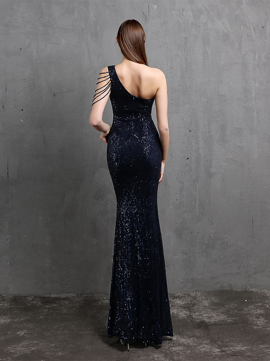 Sequin Insert Backless Mermaid Evening Dress XJ514