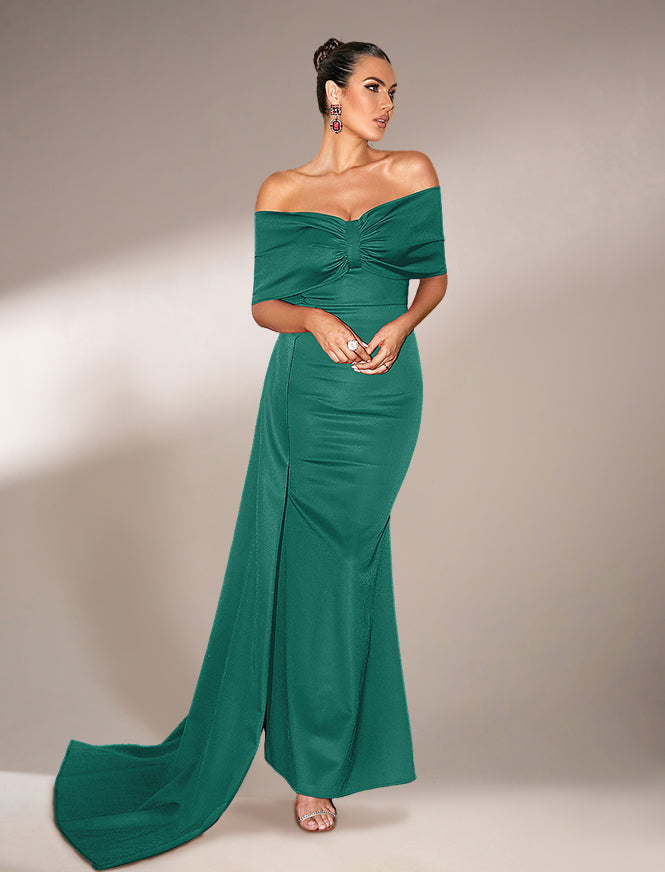 Skinny Off The Shoulder Sequin Gold Evening Dress WY91
