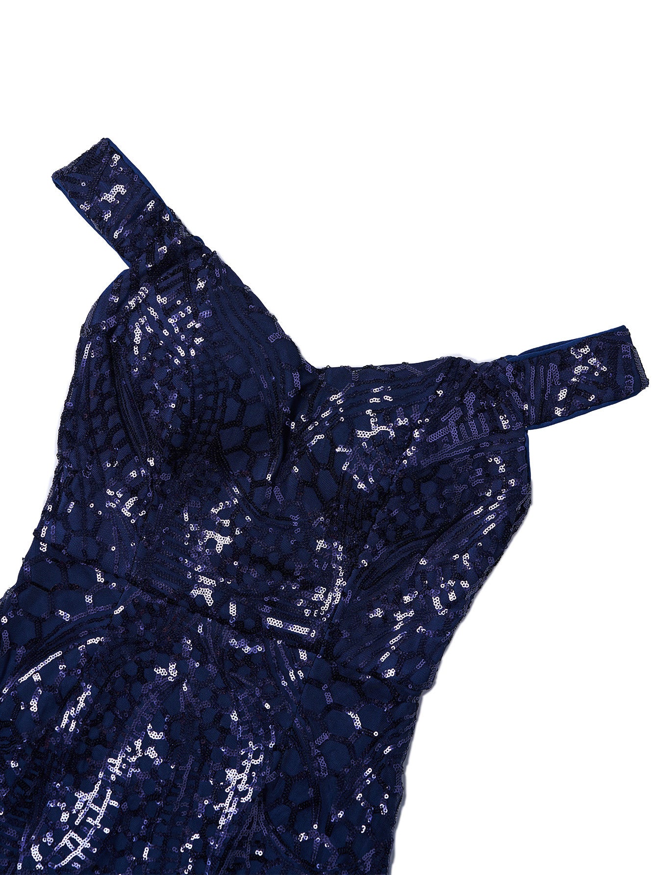 Off Shoulder Mesh Insert Split Sequin Prom Dress M0806