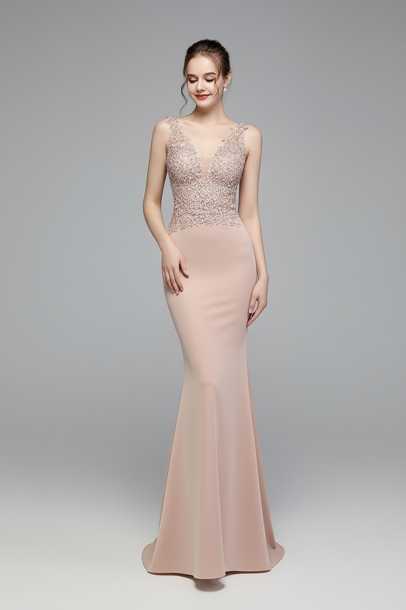 V-neck Sleeveless Embroidered Evening Dress MCW0951