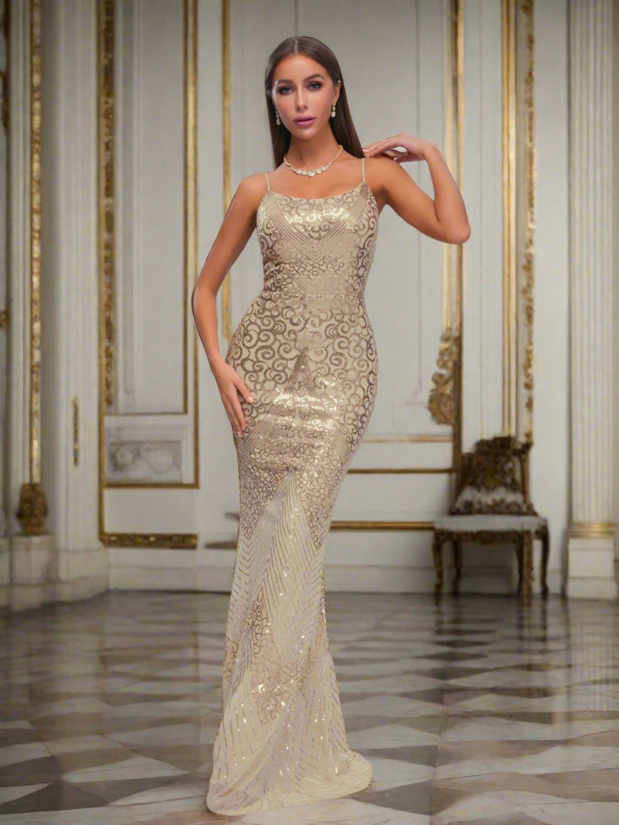 Spaghetti Straps Sequin Mermaid Dress RJ11318