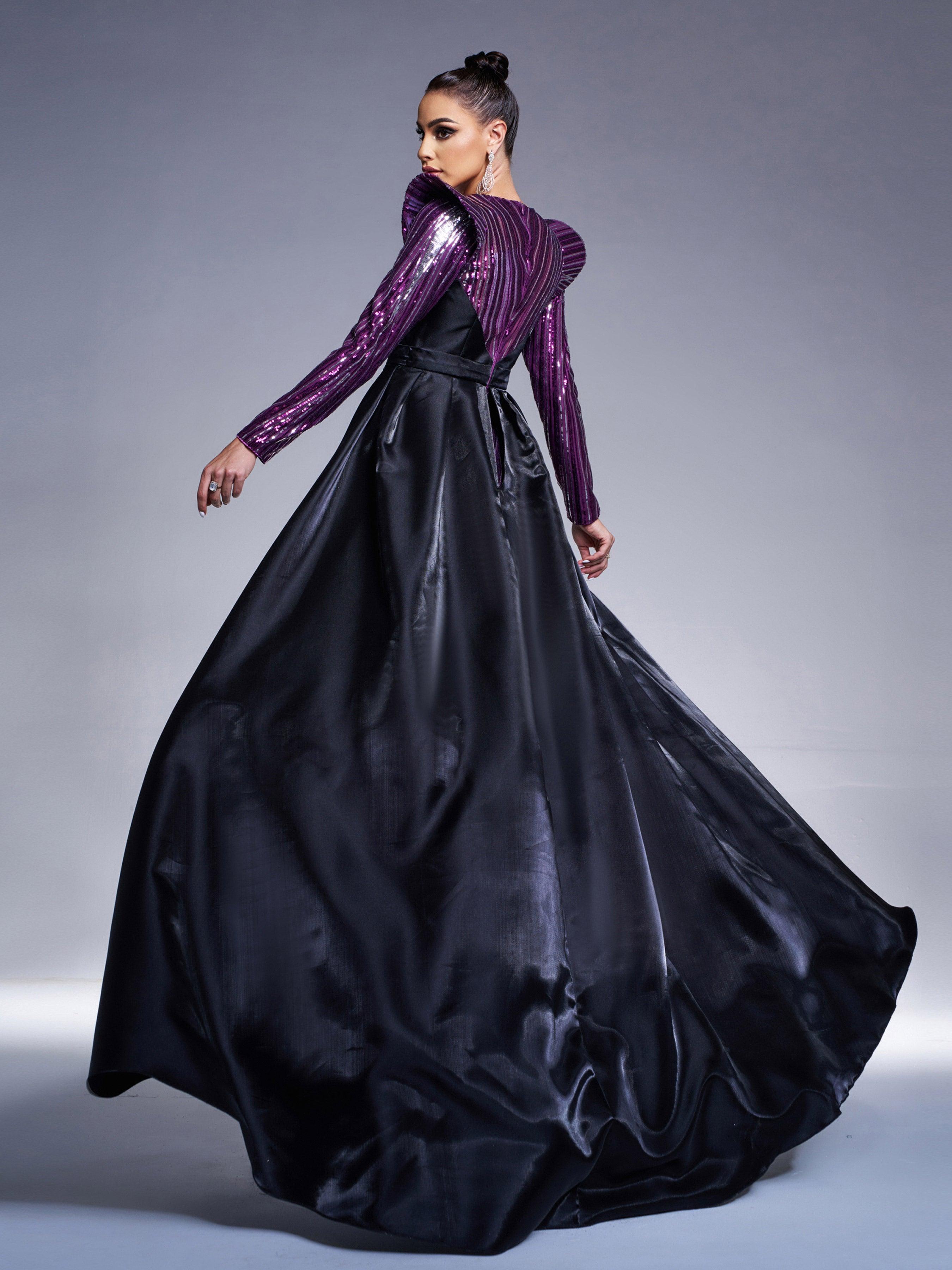 Purple Sequin Sheer Cape Evening Dress GZ60044