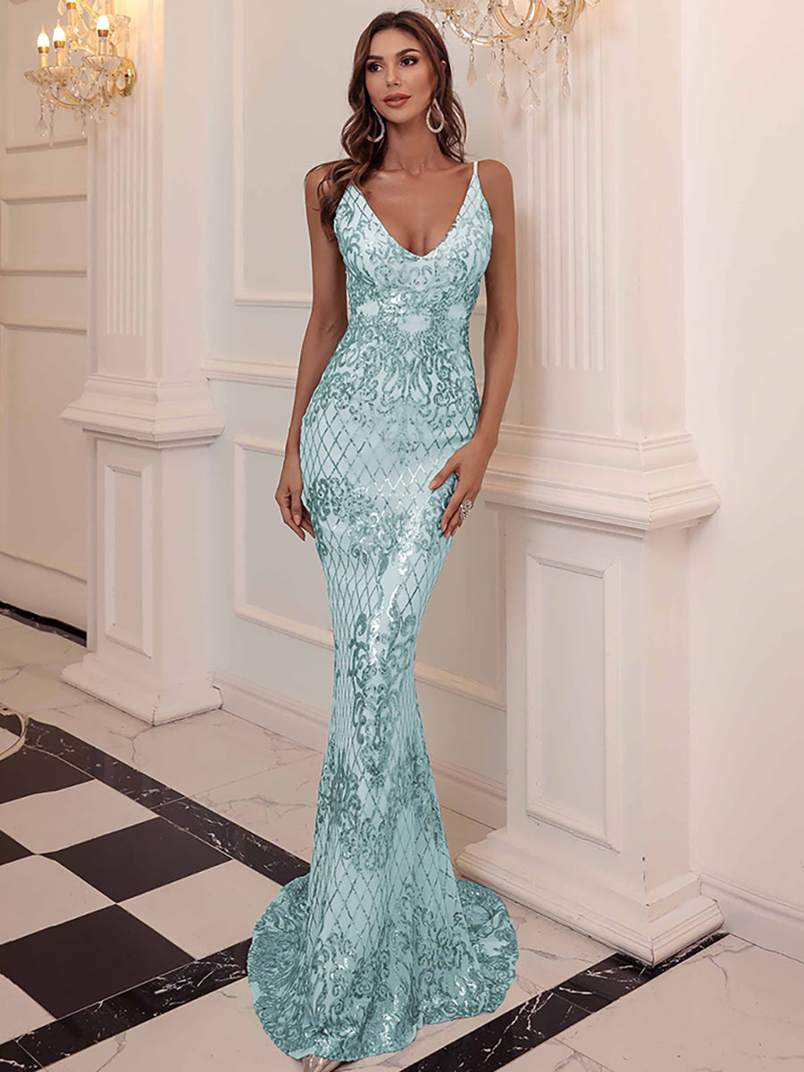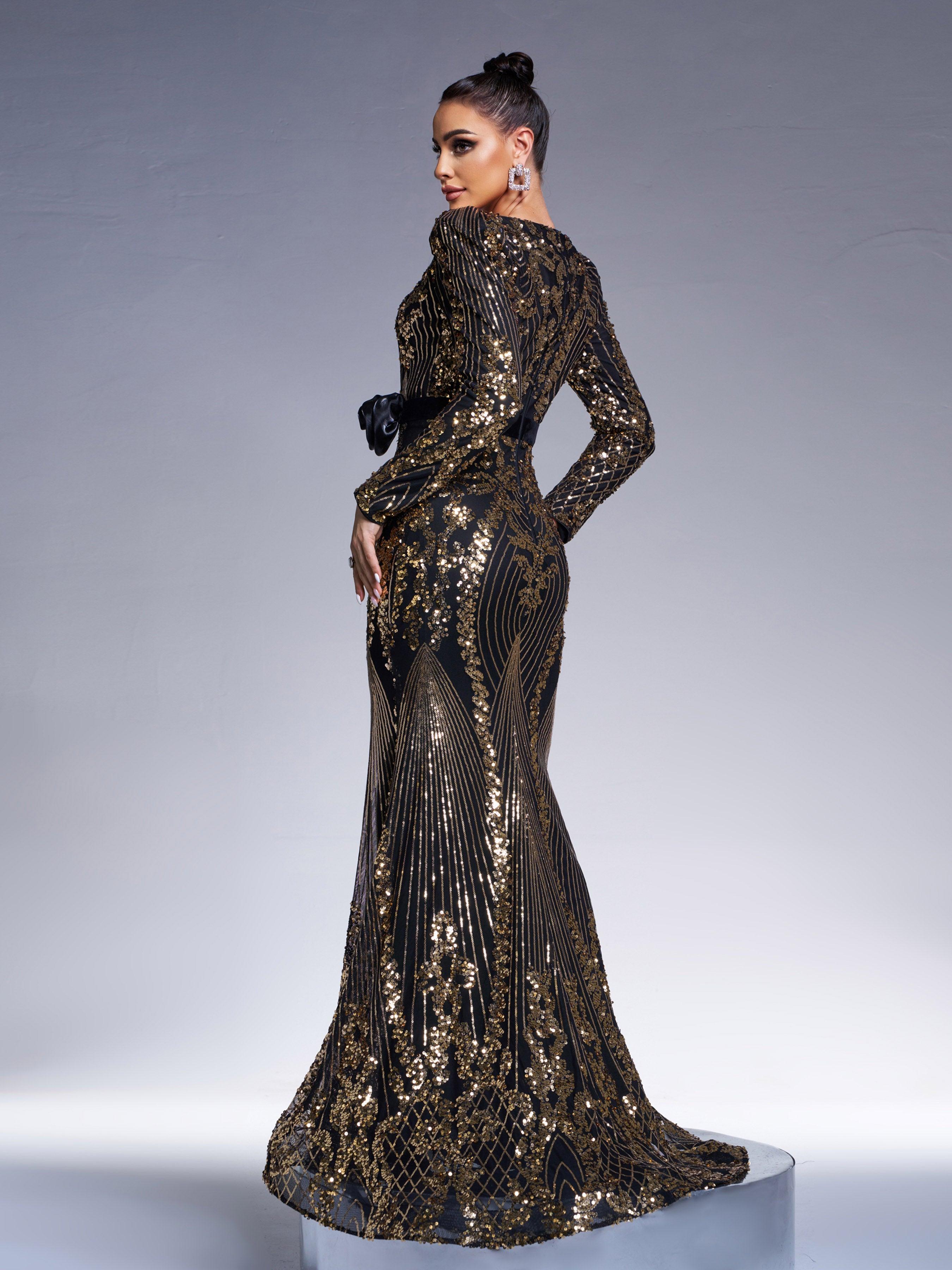 Luxury Geometric Sequin Long Sleeve Formal Dress DH80402