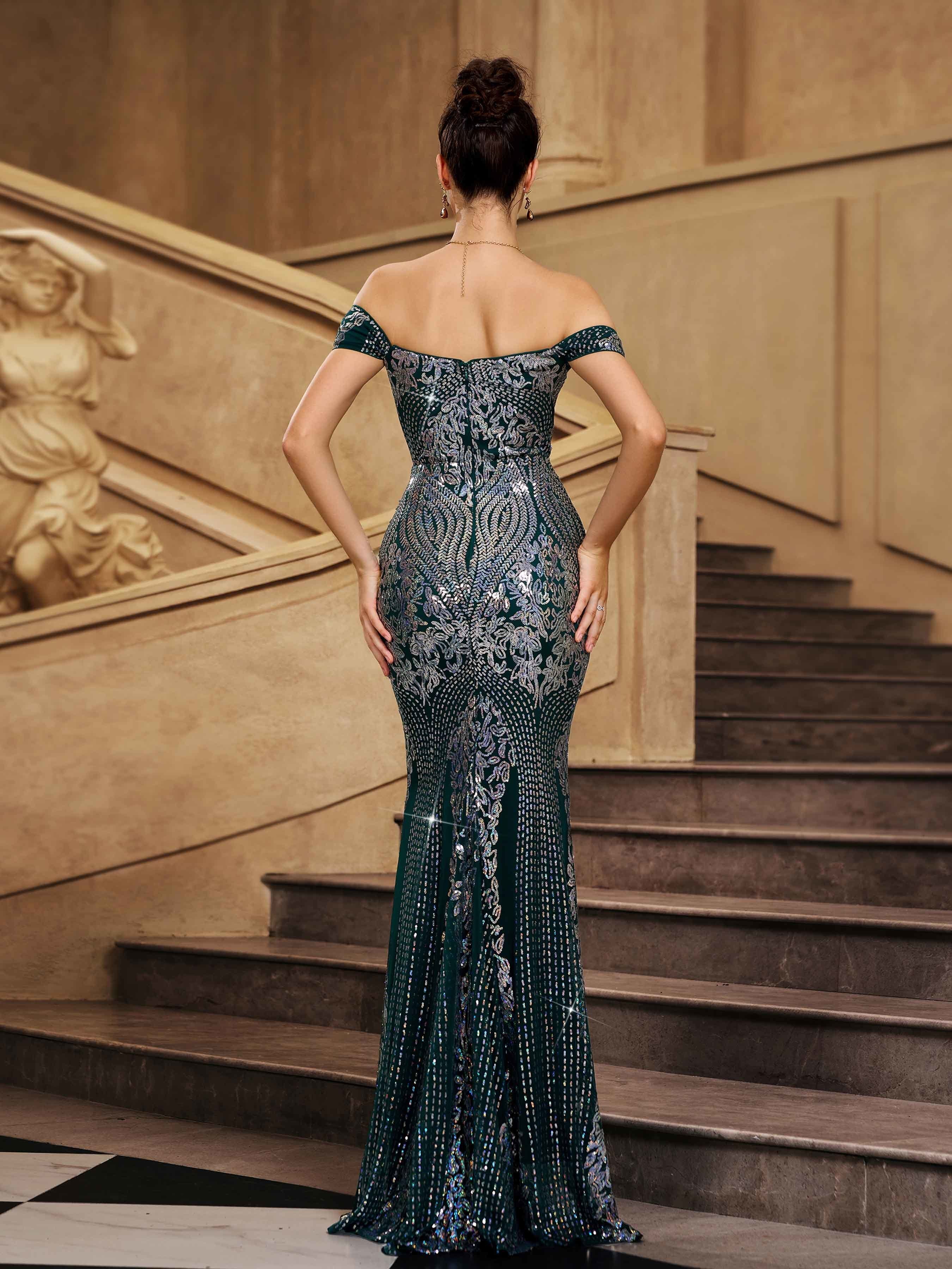 Luxury Sequin Off-Shoulder Evening Dress XF251219