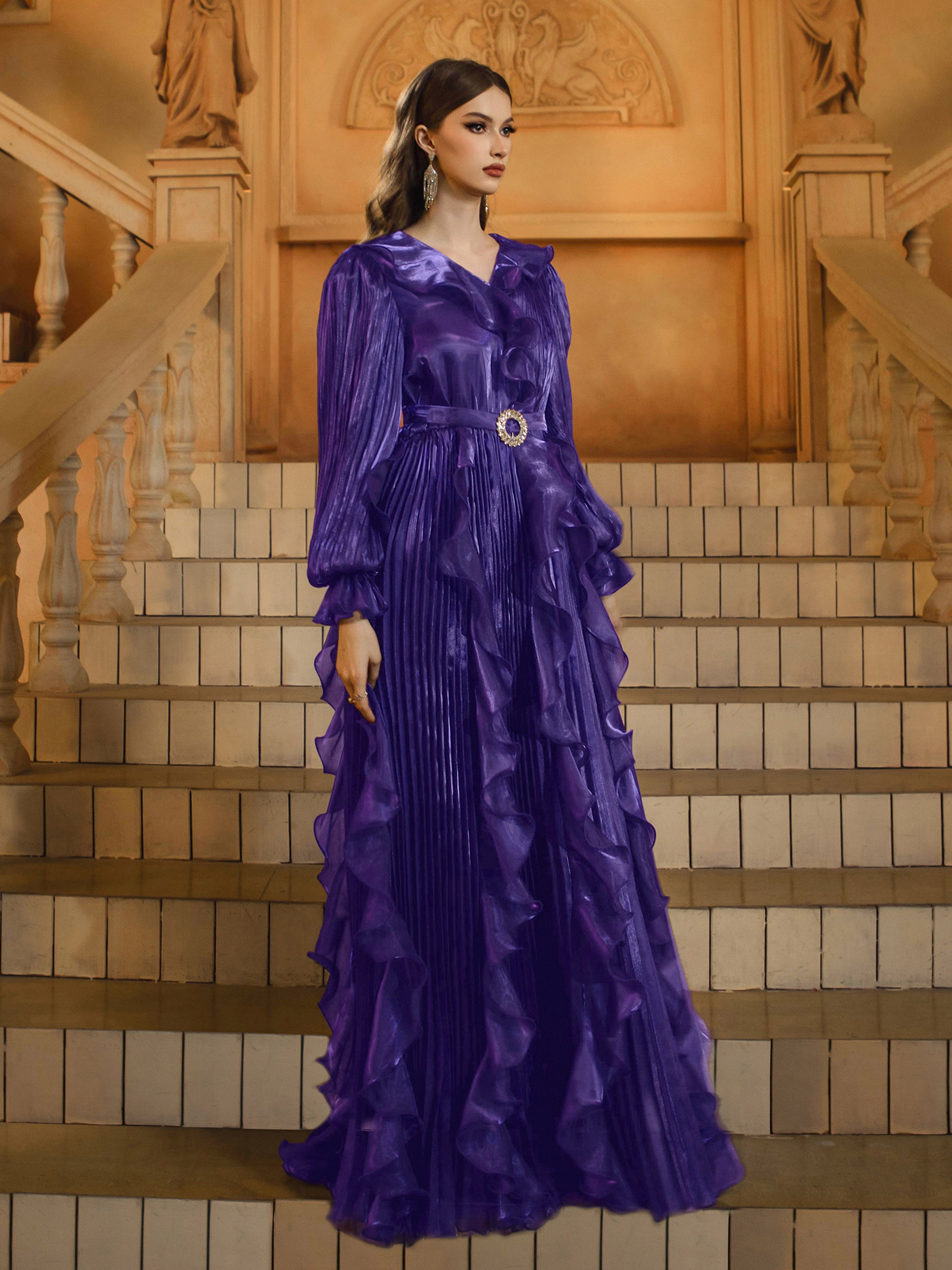 Purple Ruffled A-line Layer Prom Dress DH80483