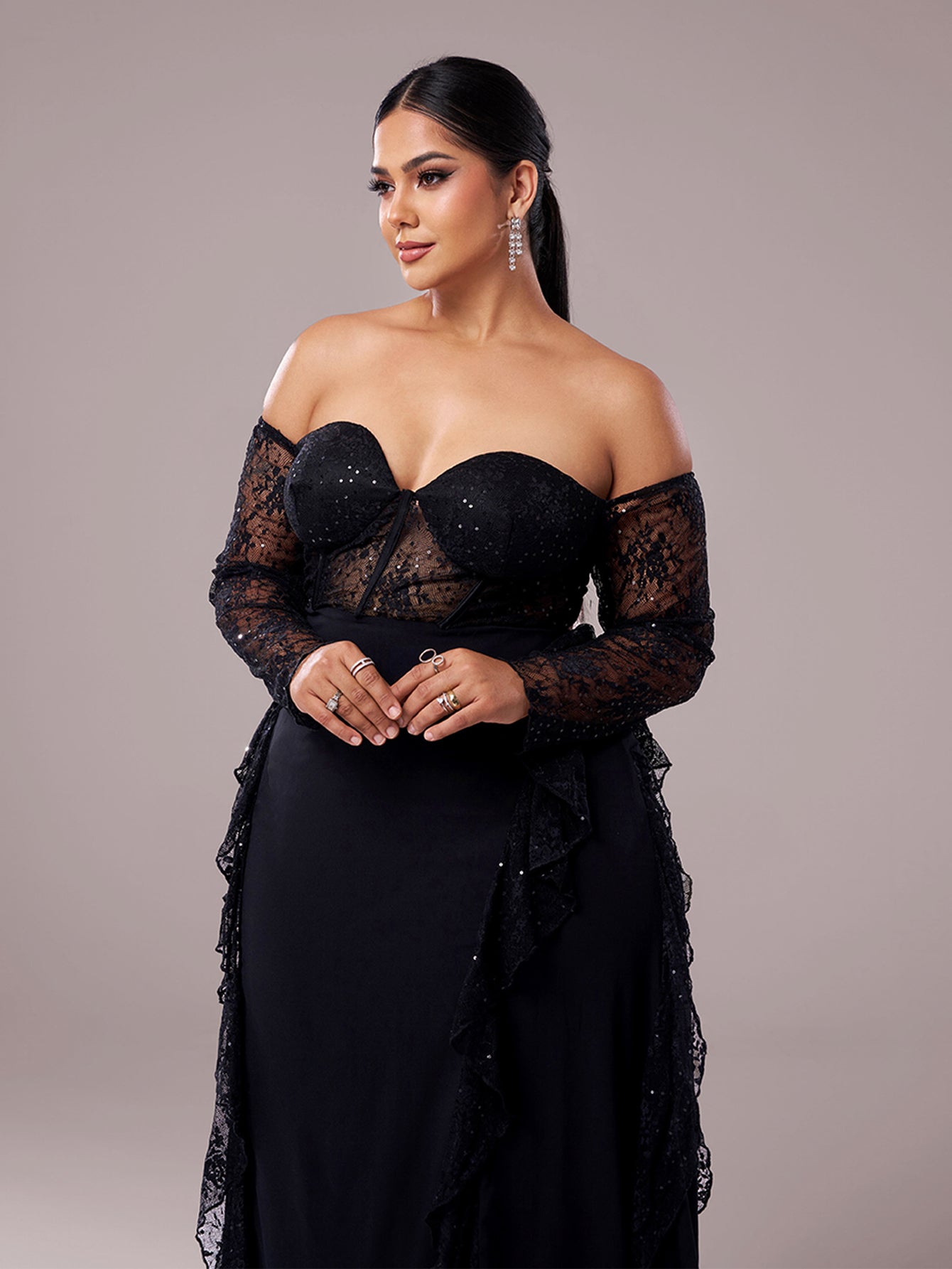 Plus Off Shoulder Mermaid Sequin Dress PRX70057