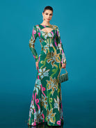 Long Sleeve Corset Cutout Floral Evening Dress DH80214