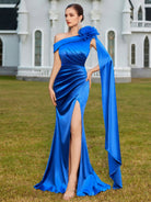 Royal Blue One-Shoulder Ruched Satin Prom Maxi Dress XF250130