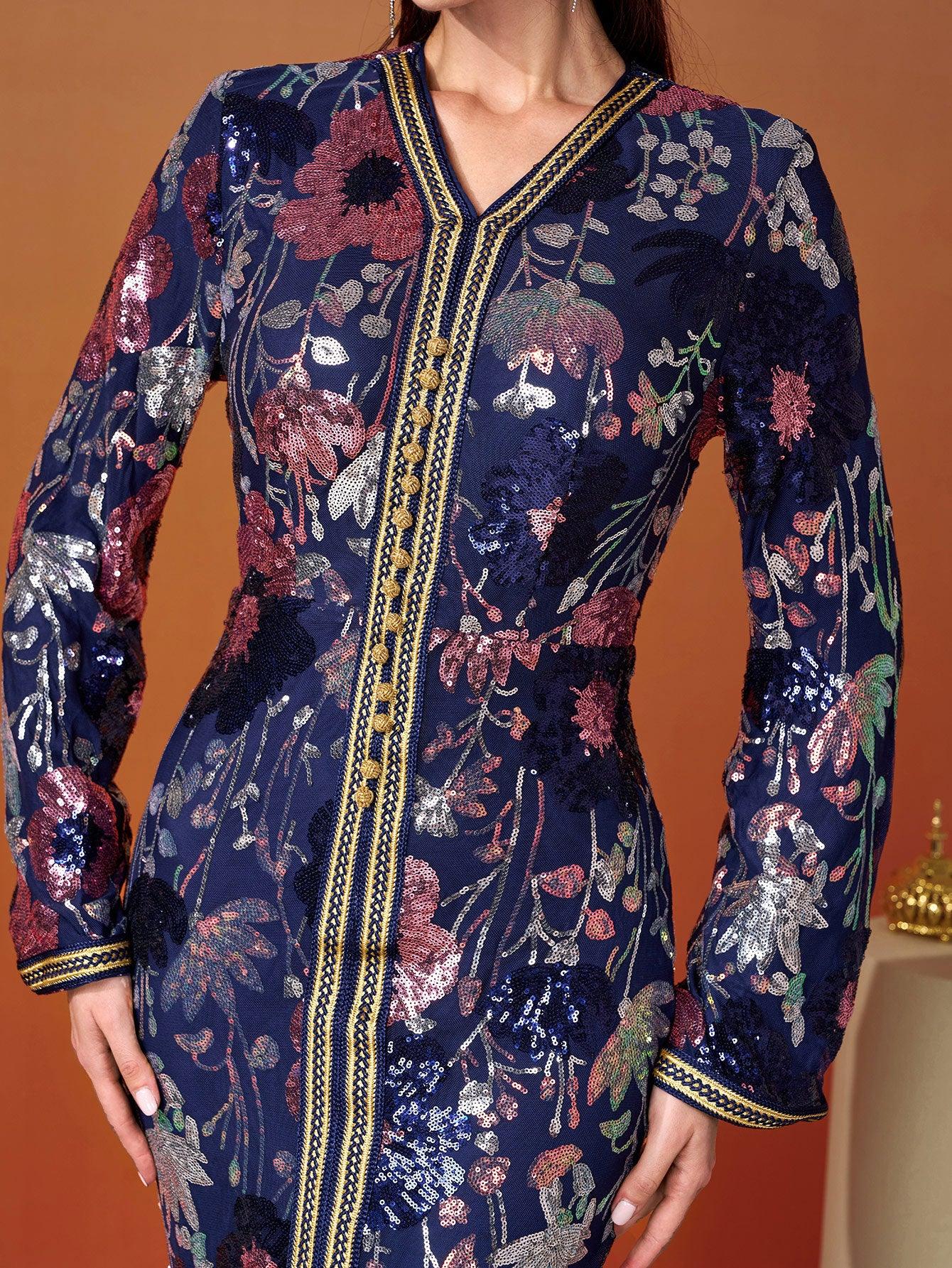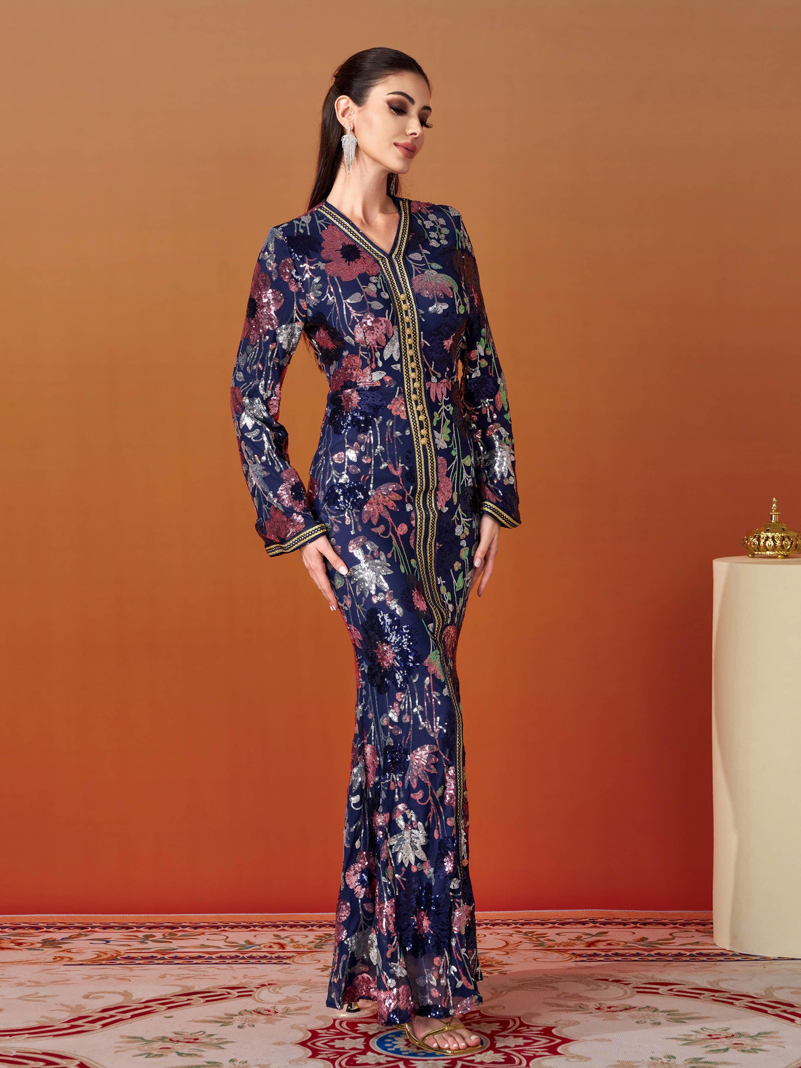 This enchanting V-neck dress will make you feel like a true lady with its delicate floral sequins and elegant split design. Combine it with your favorite accessories to create a stunning and unique formal look. Perfect for any special occasion!