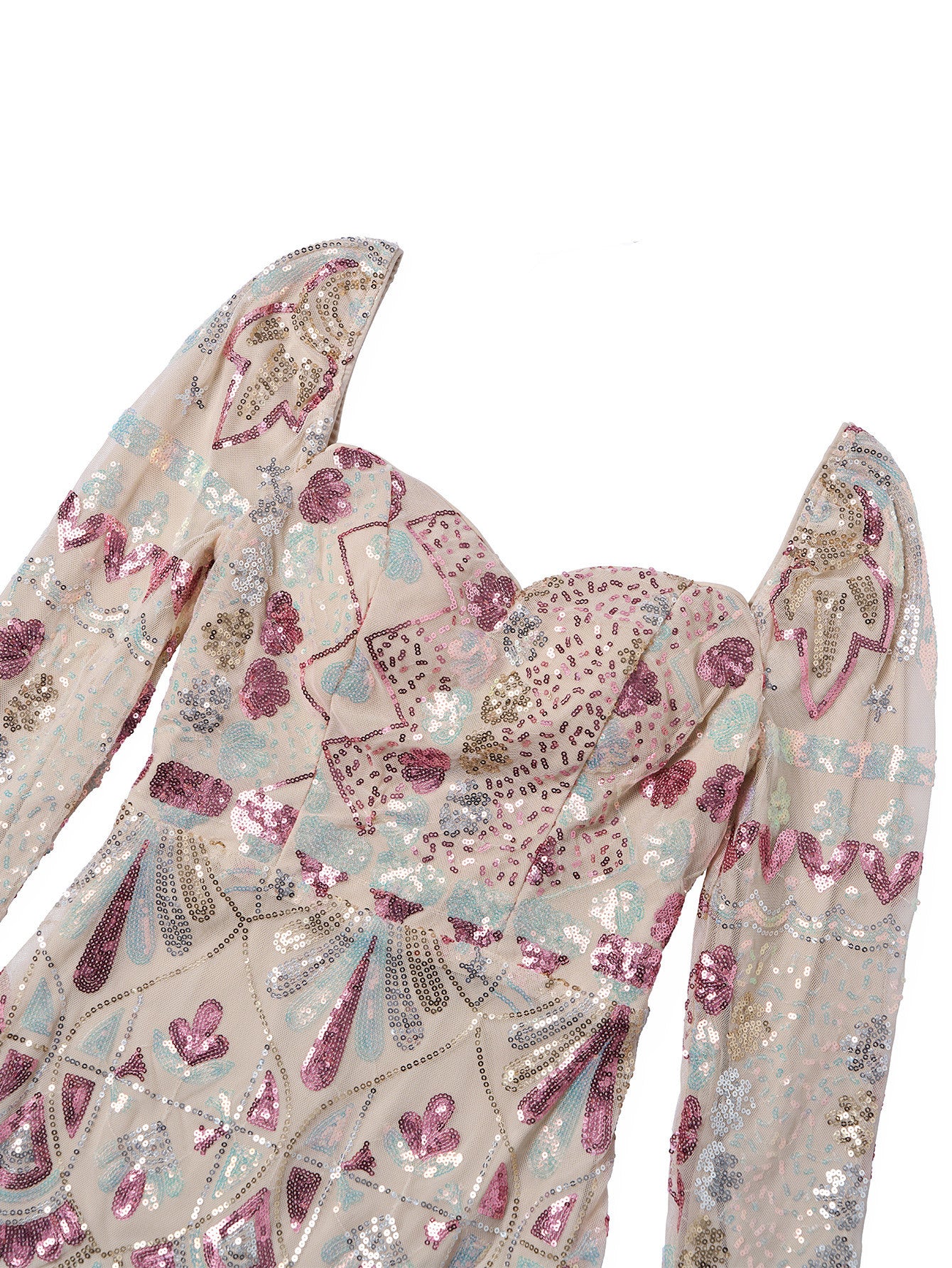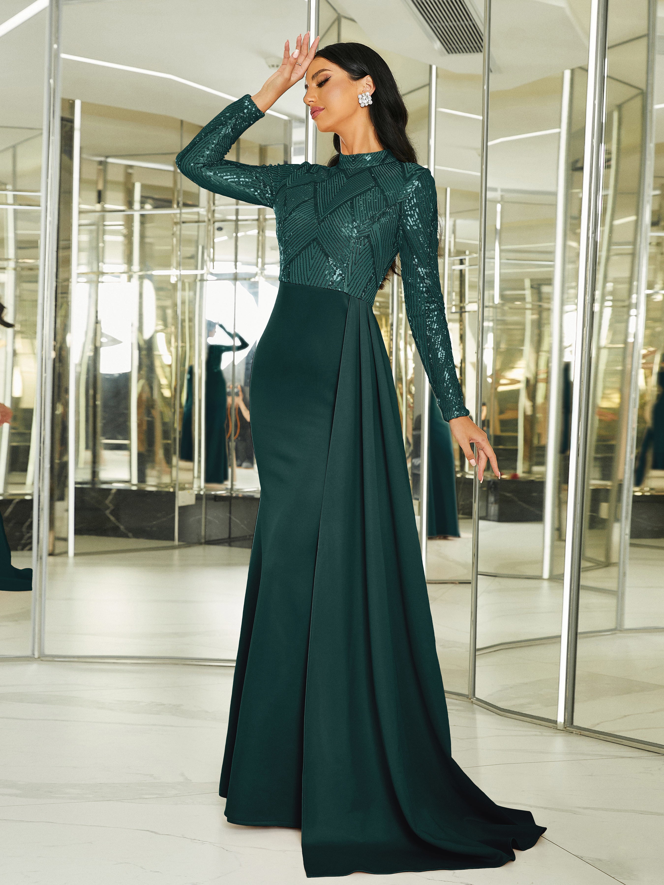 Draping Long Sleeve Sequin Formal Dress M02153
