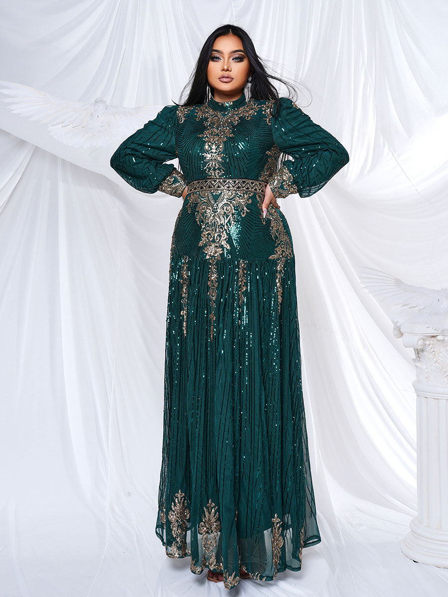 Plus Stand Collar Sequin A-line Dress PMES00341