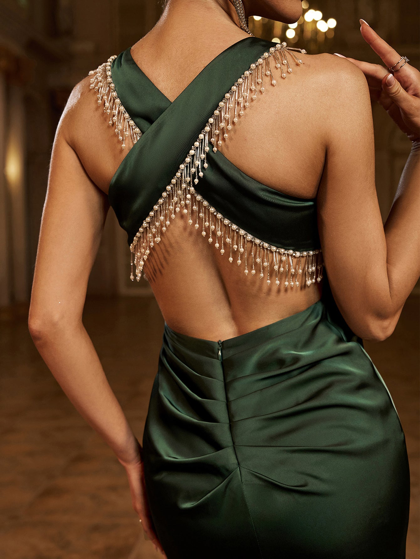 Emerald Green V-neck Backless Evening Dress XH2133