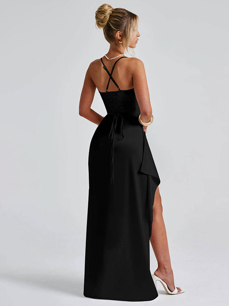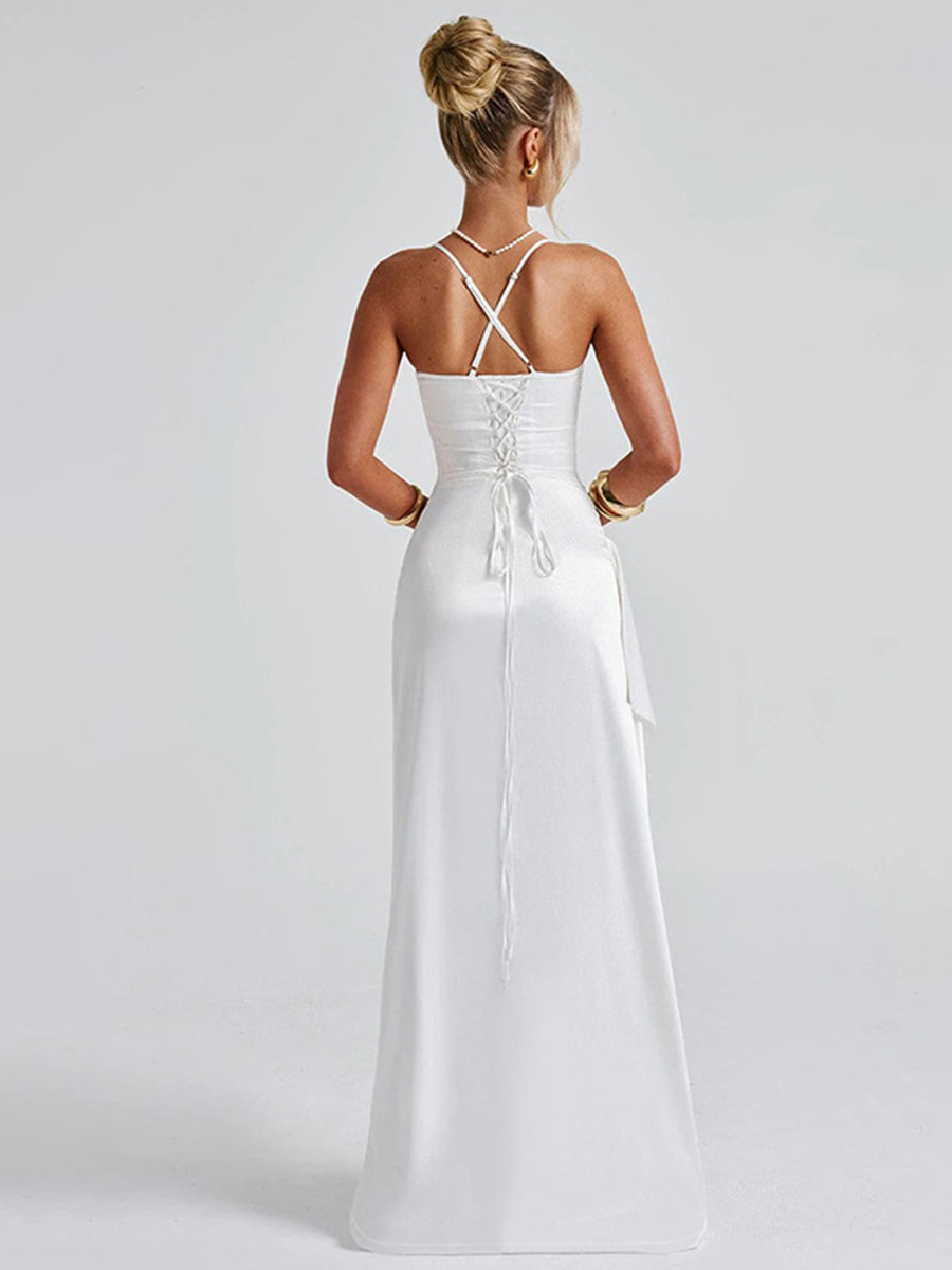White Lace-up Asymmetric Cocktail Dress XF05757