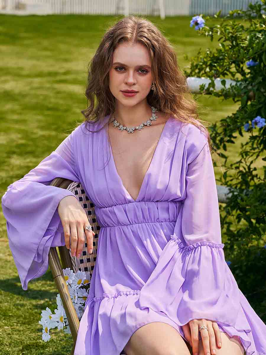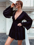 Fall in love with our V-neck Ruffle Hem Vacation Dress! The perfect choice for your next getaway, this dress features a flattering v-neckline and delicate ruffle hem for a touch of femininity. Its lightweight fabric will keep you cool and comfortable while you explore new destinations. Pack it in your suitcase for effortless style on your next vacation!